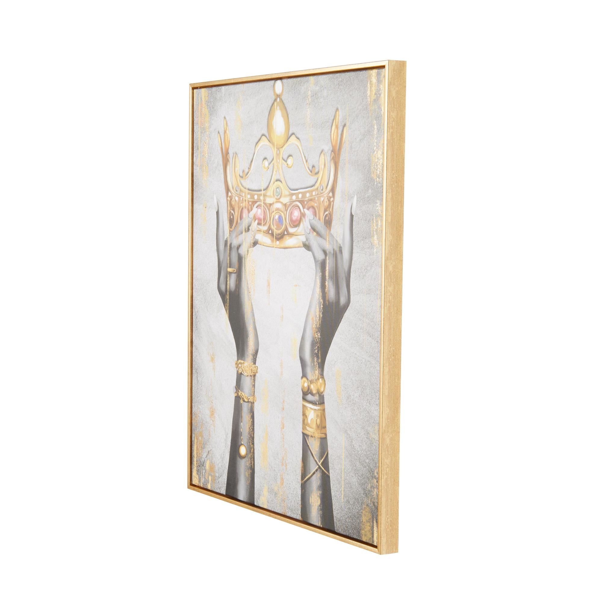 Crown Gold Canvas Living Room Framed Wall Art with Shaded Hands and Metallic Foil Accents
