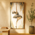•This living room framed wall art is crafted from polystone, fir, iron, and canvas, offering durability and longevity