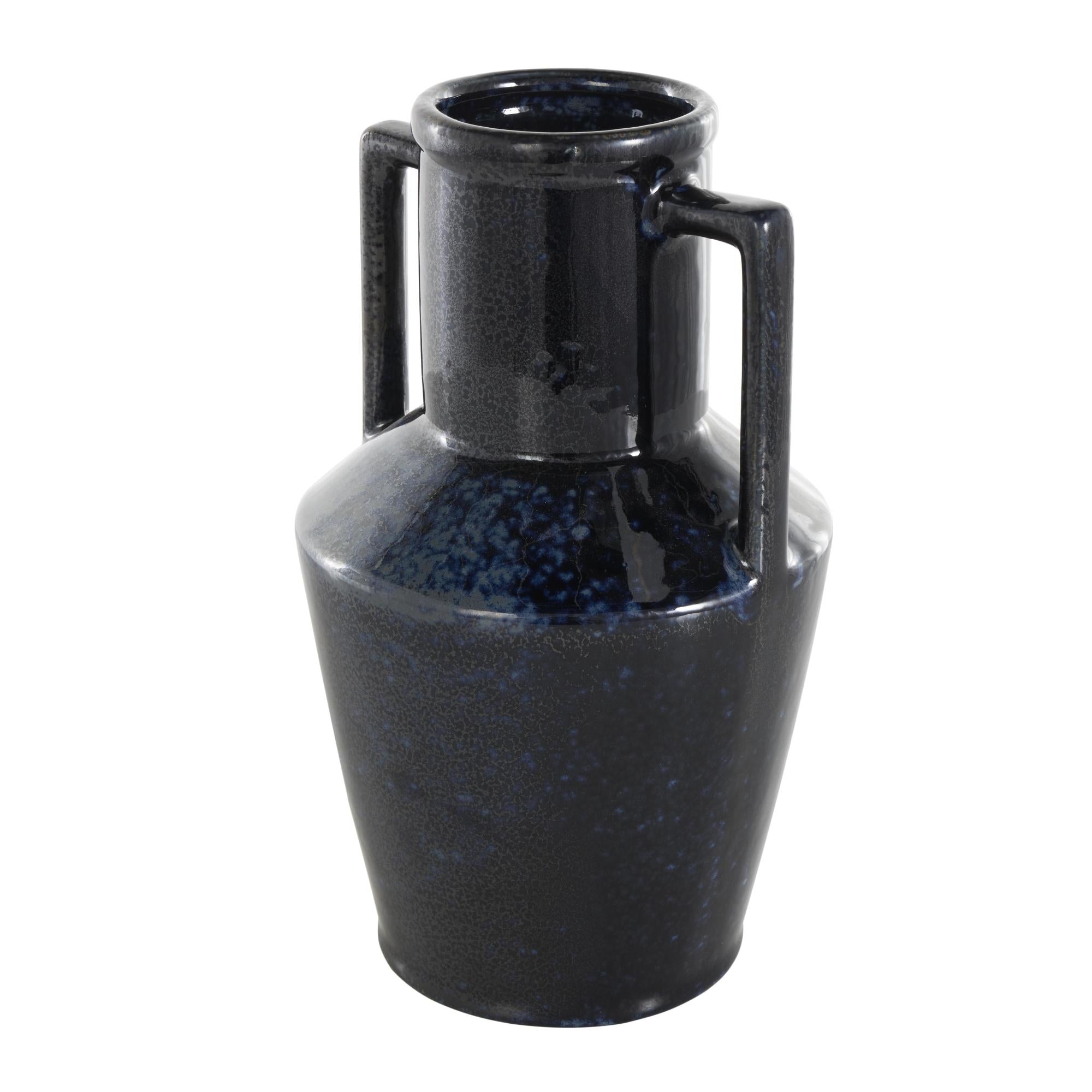Dark Blue Ceramic Ombre Textured Decorative Vase with Rectangular Handles