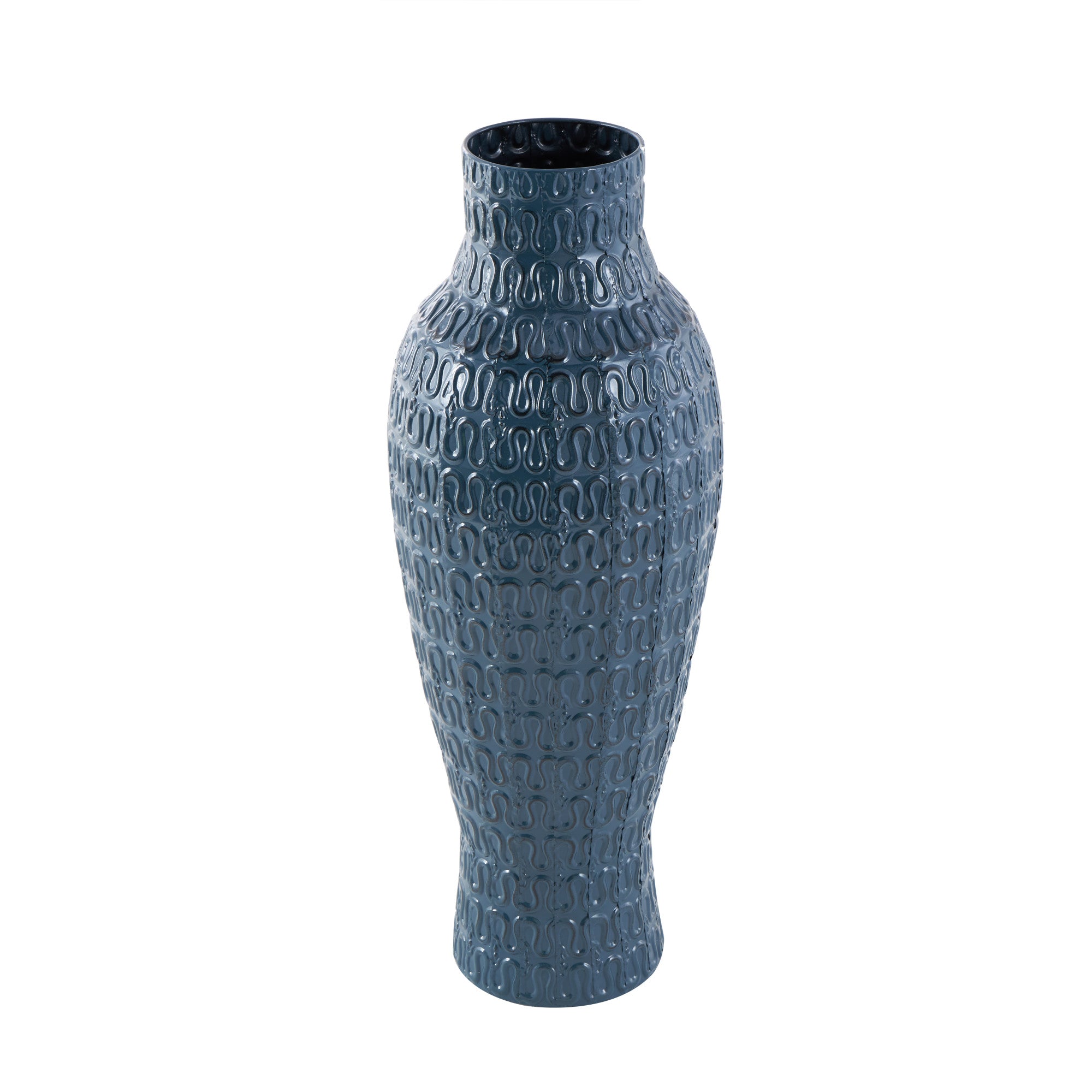 Dark Blue Metal Dimensional Textured Decorative Vase with Wavy Pattern