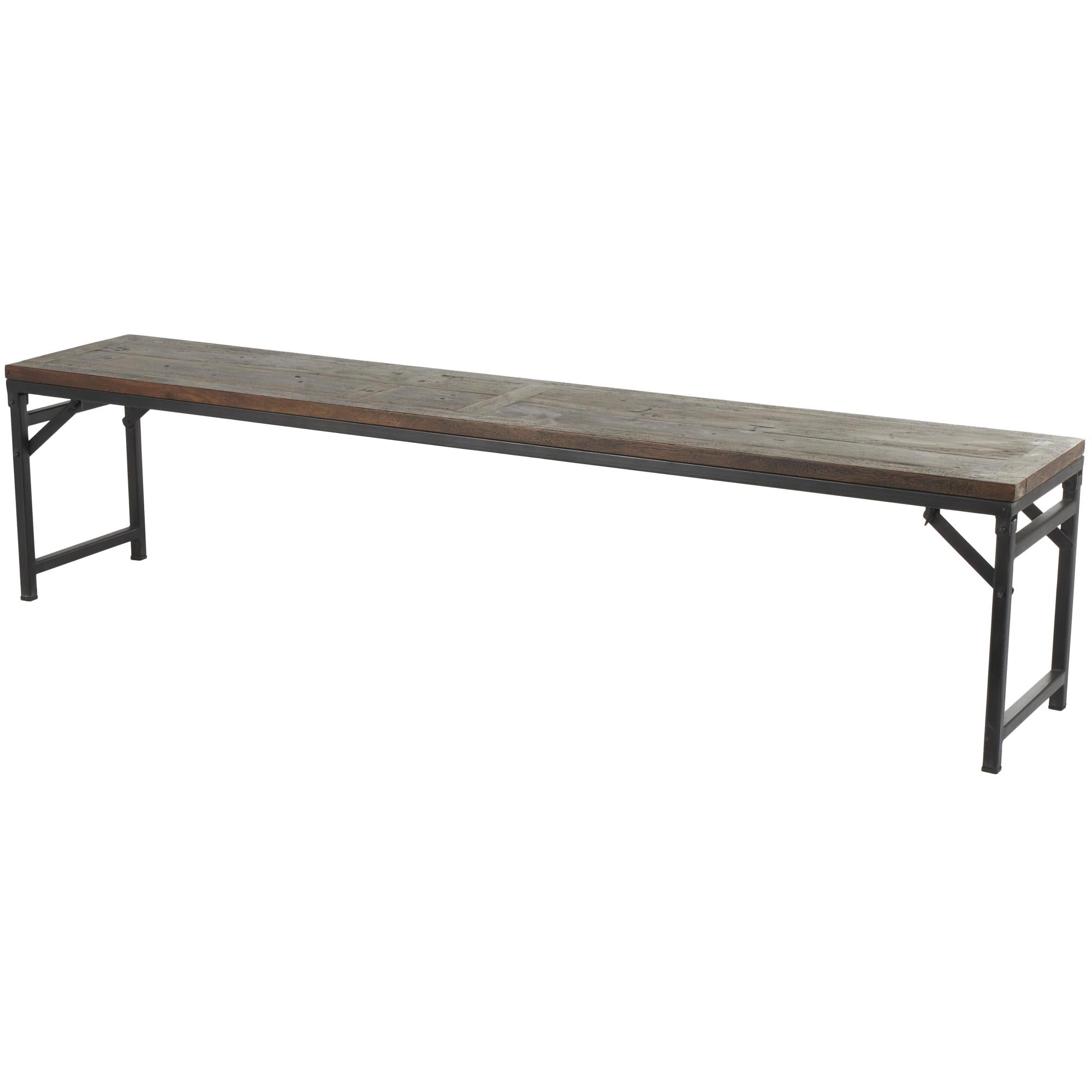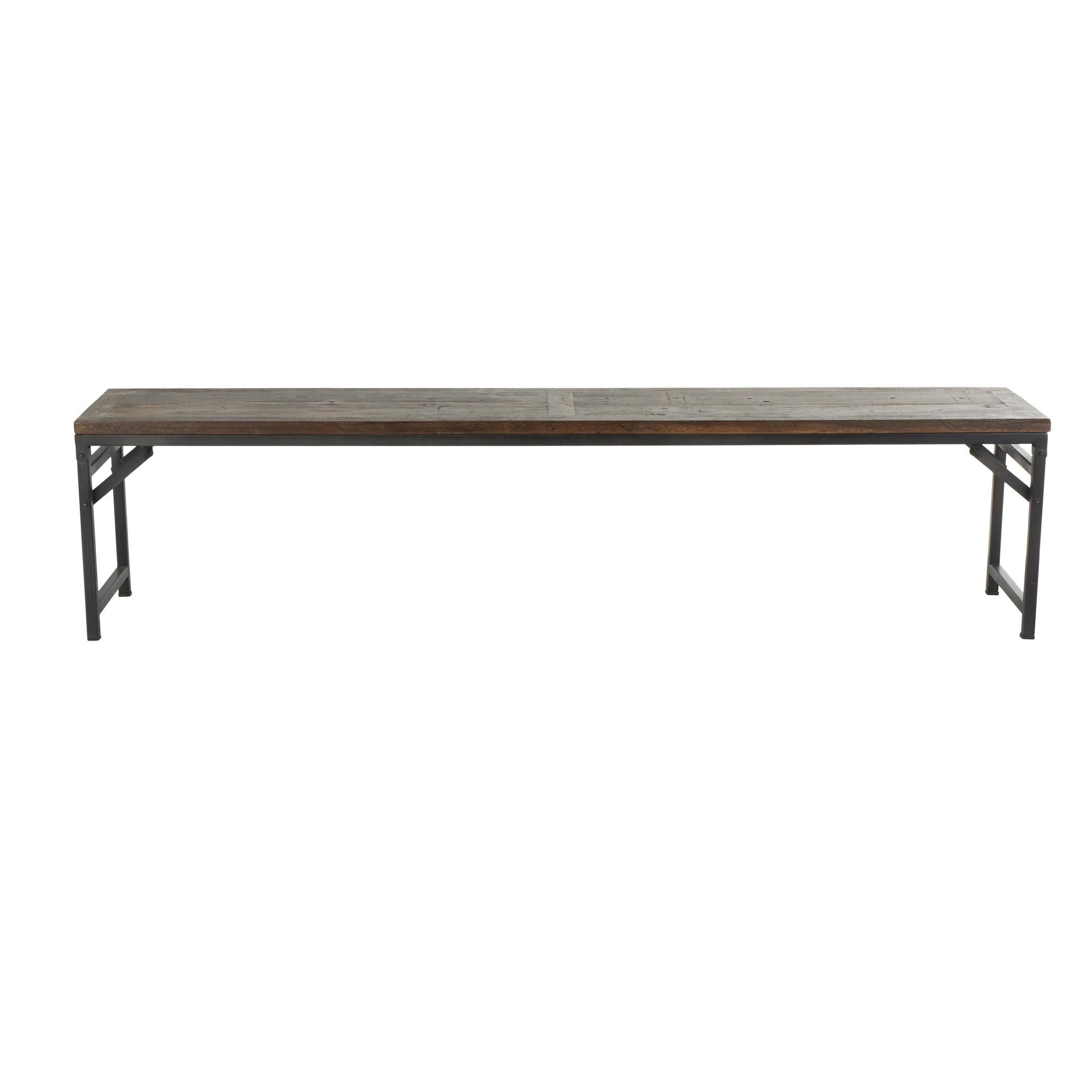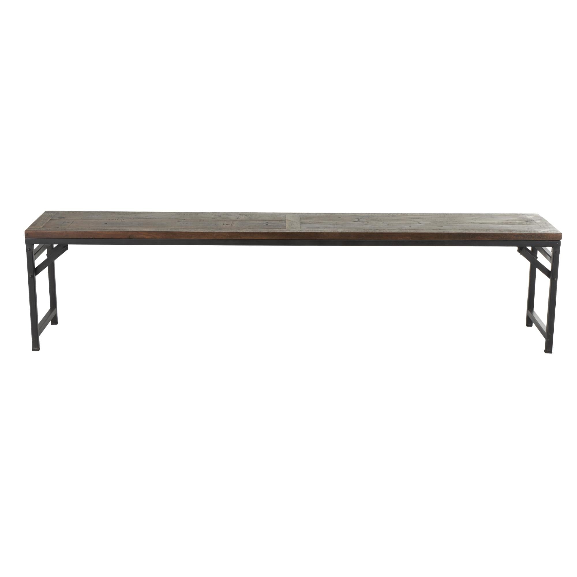 Dark Brown Teak Wood Long Home Bench with Black Metal Legs