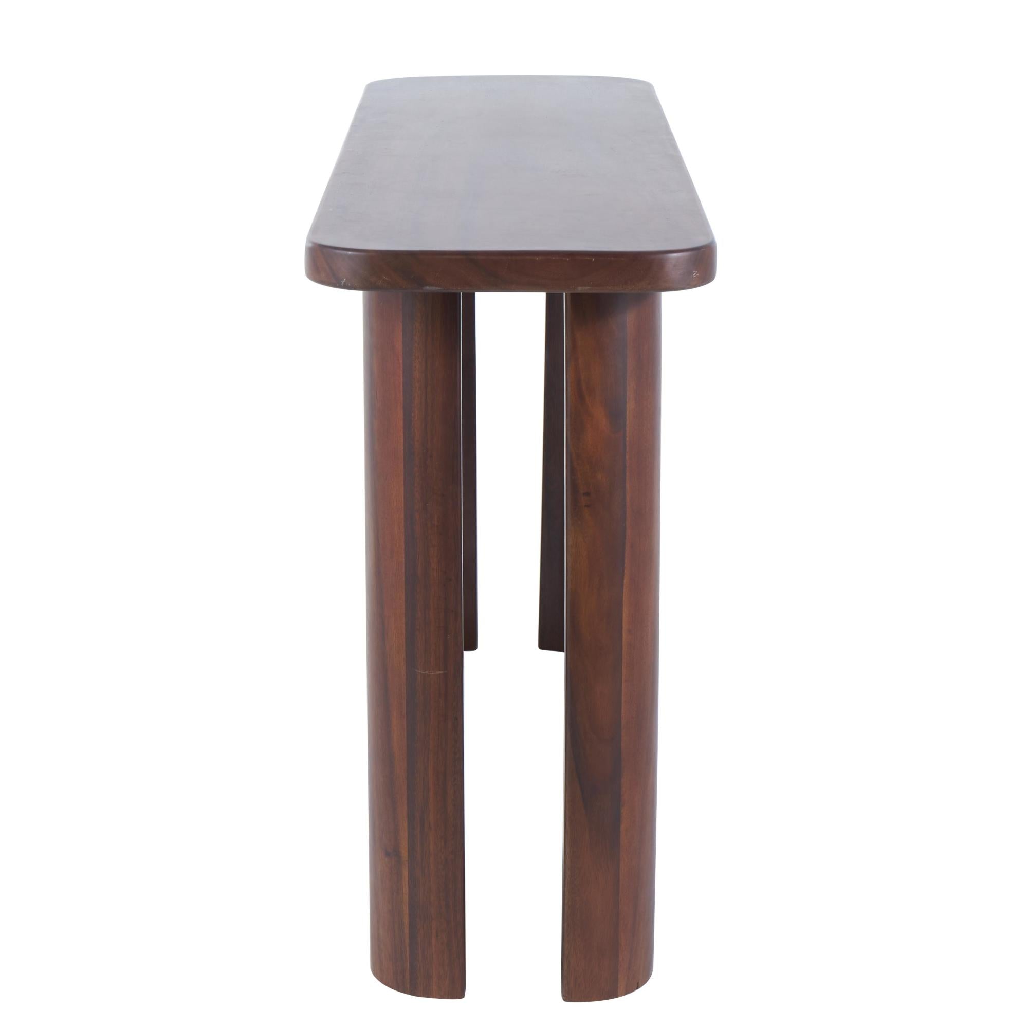 •The albizia wood console table's notable features include curved legs panels, adding elegance and a unique design element to the piece