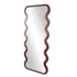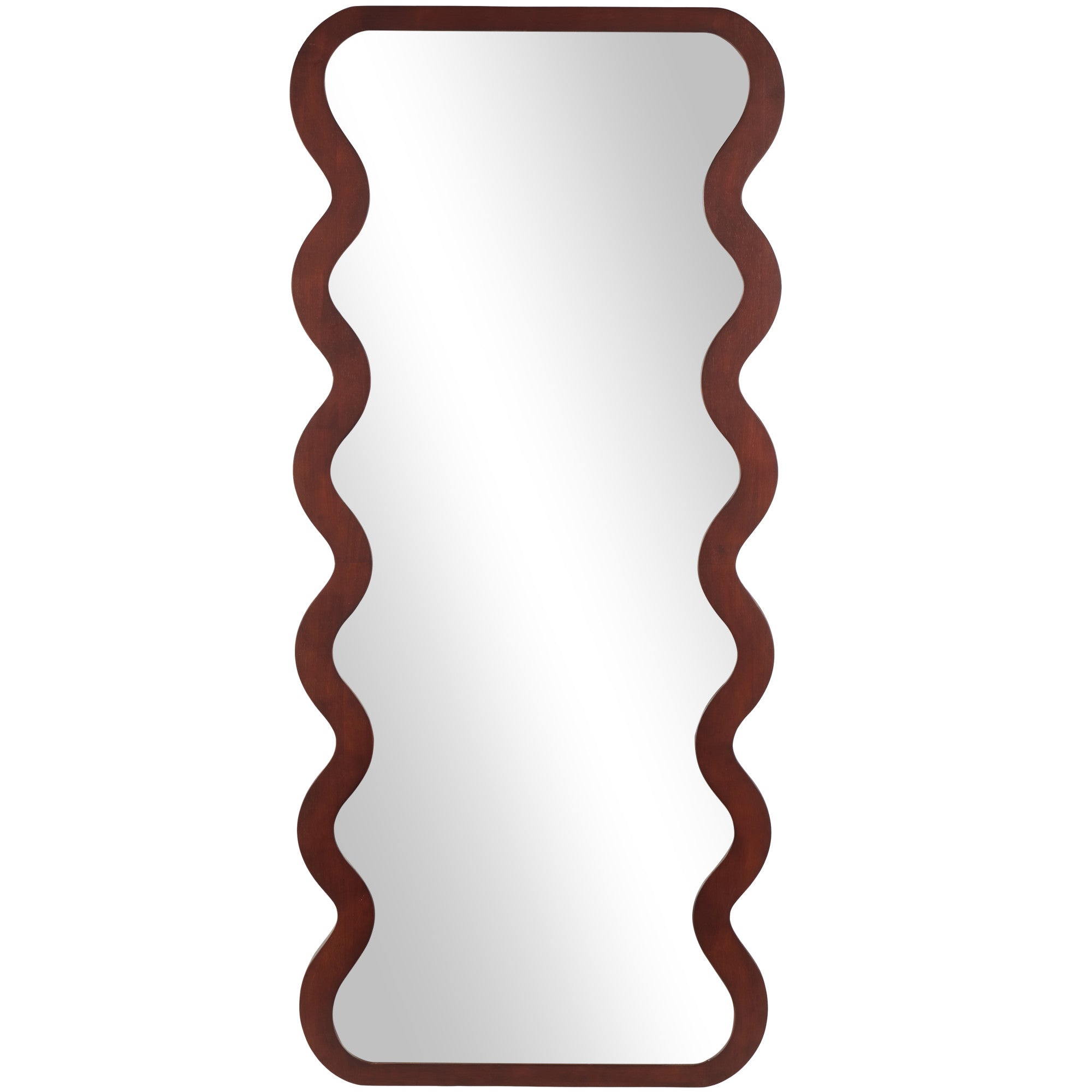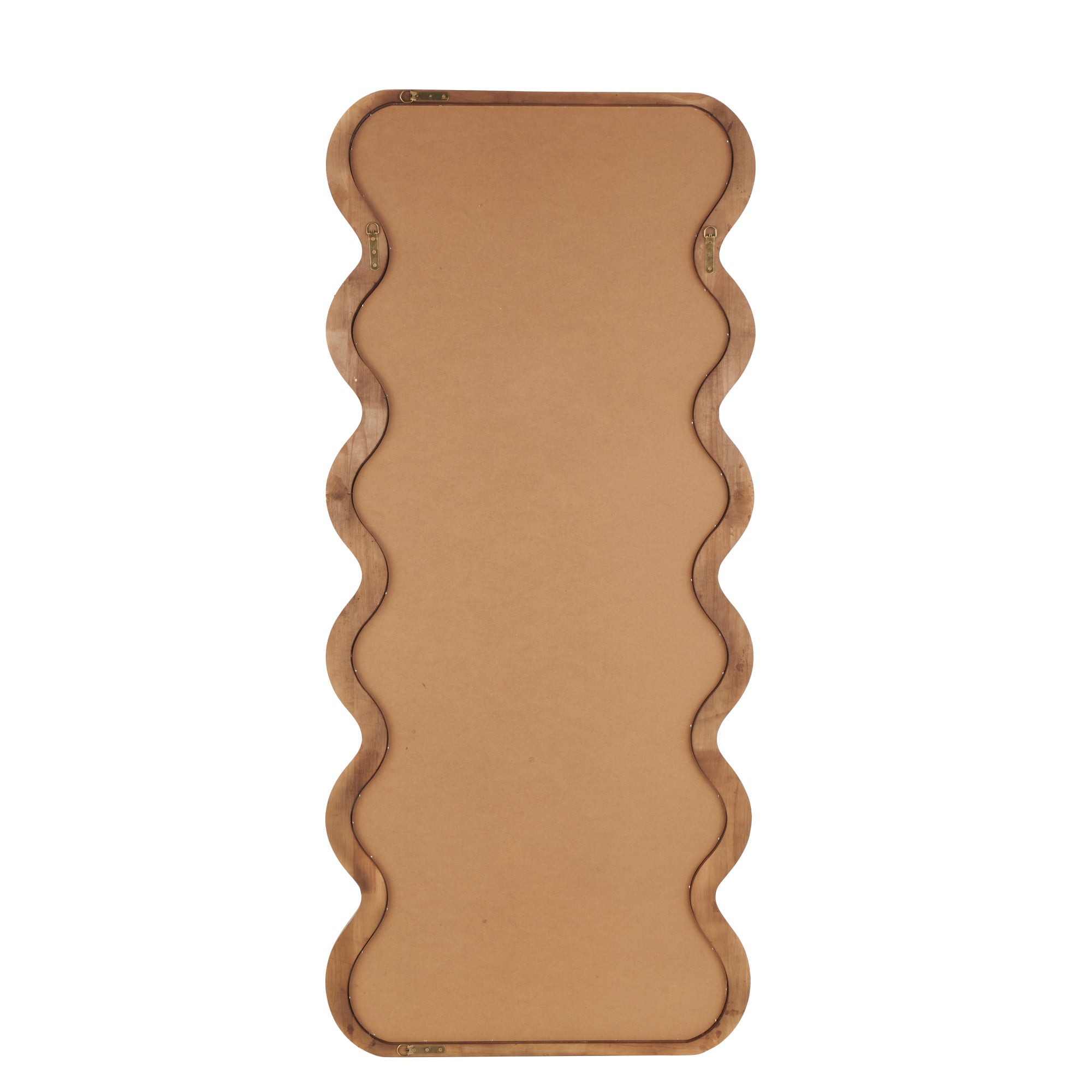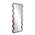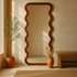 •This wood entryway mirror boasts a wavy design that complements modern decor