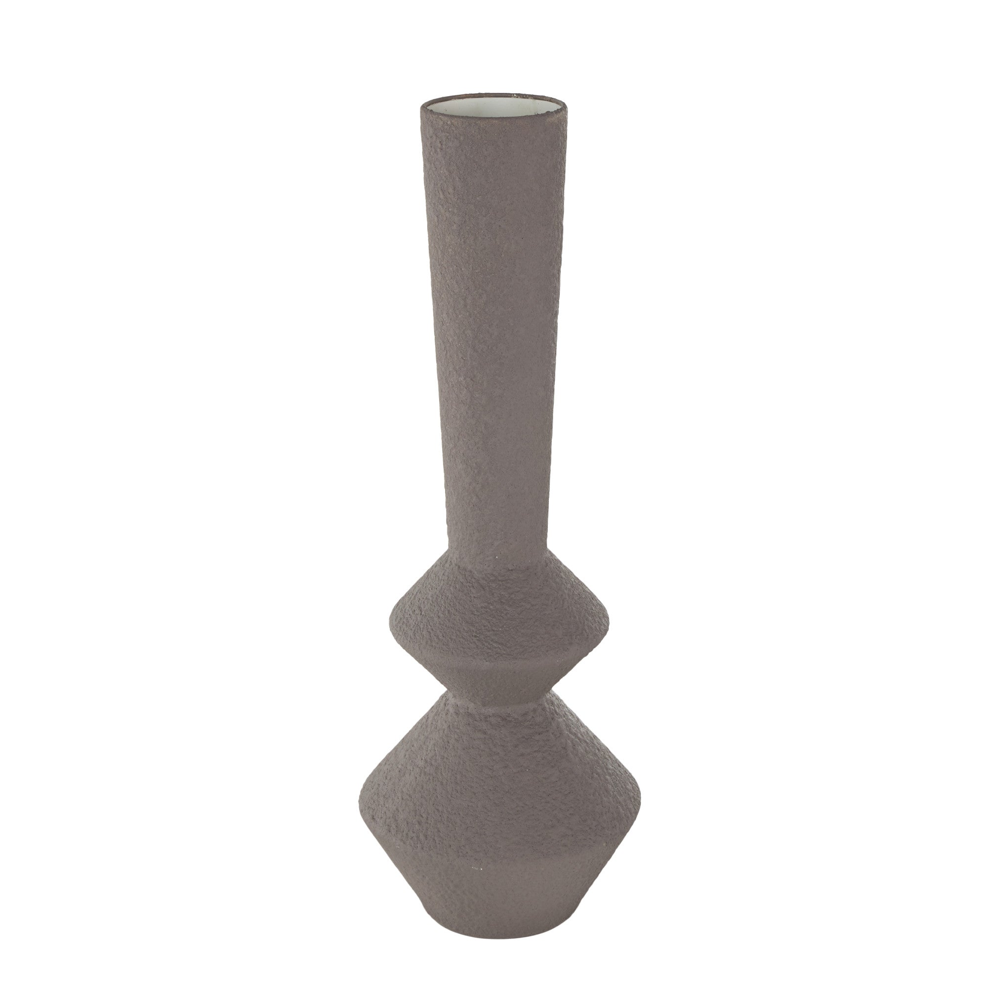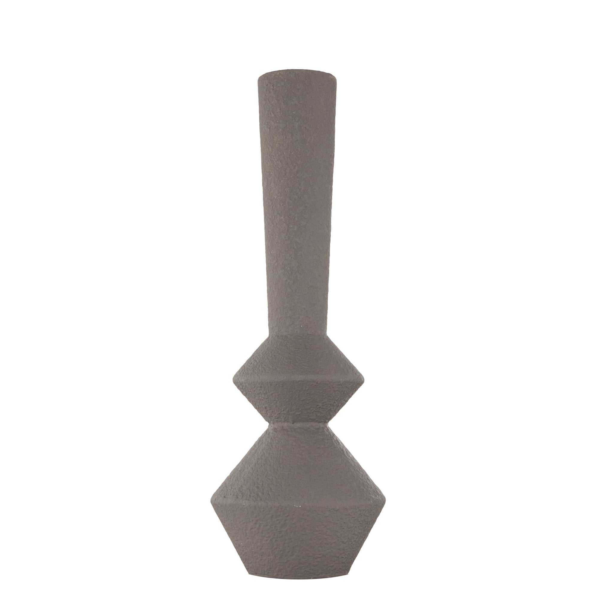 •This modern vase for home decor showcases expert craftsmanship with iron metal into a cone shape and applied with a textured finish