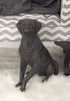 •Polystone sculpture showcases a life-like image of a sitting Labrador complete with skin fold and rib details, along with a tame facial expression