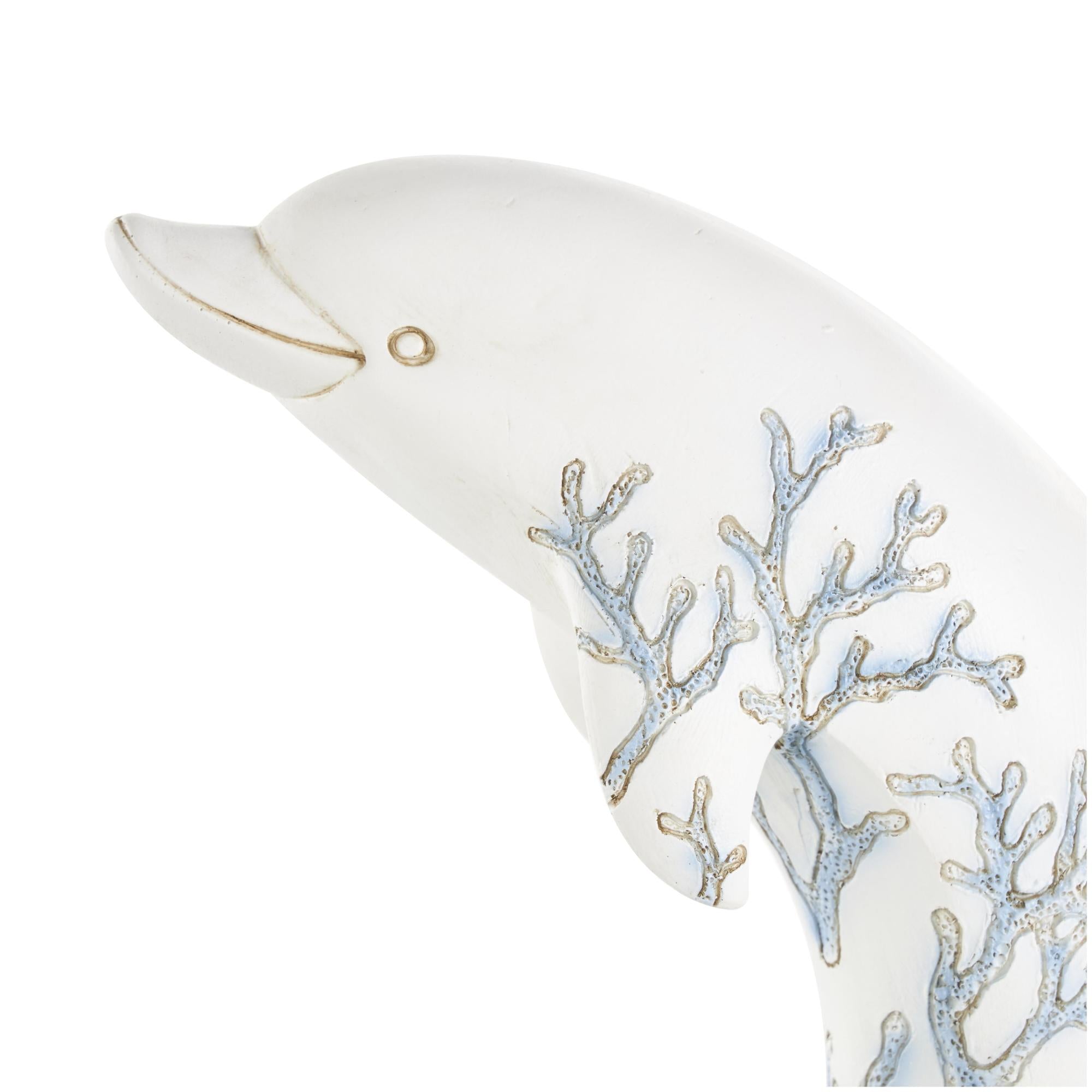 Dolphin White Polystone Curved Decorative Sculpture with Blue Coral Patterns