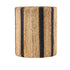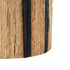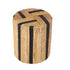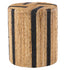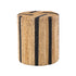 •The textured living room table boasts of a cylindrical shape, elevated block base and is wrapped in twisted banana leaves forming a linear pattern with striped accents and an overlapping grid design at the top