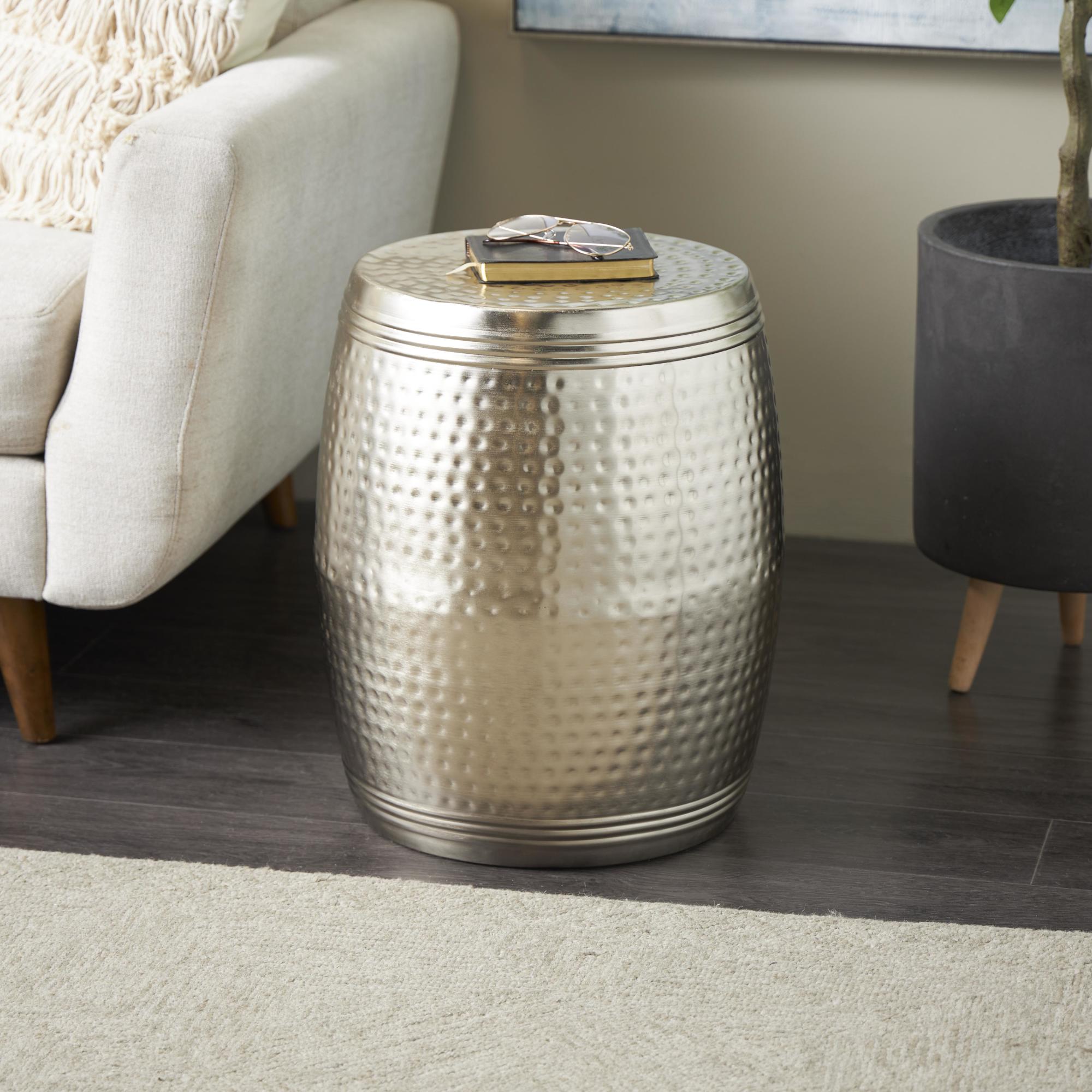 Drum Metal Handmade Side End Accent Table with Hammered Design