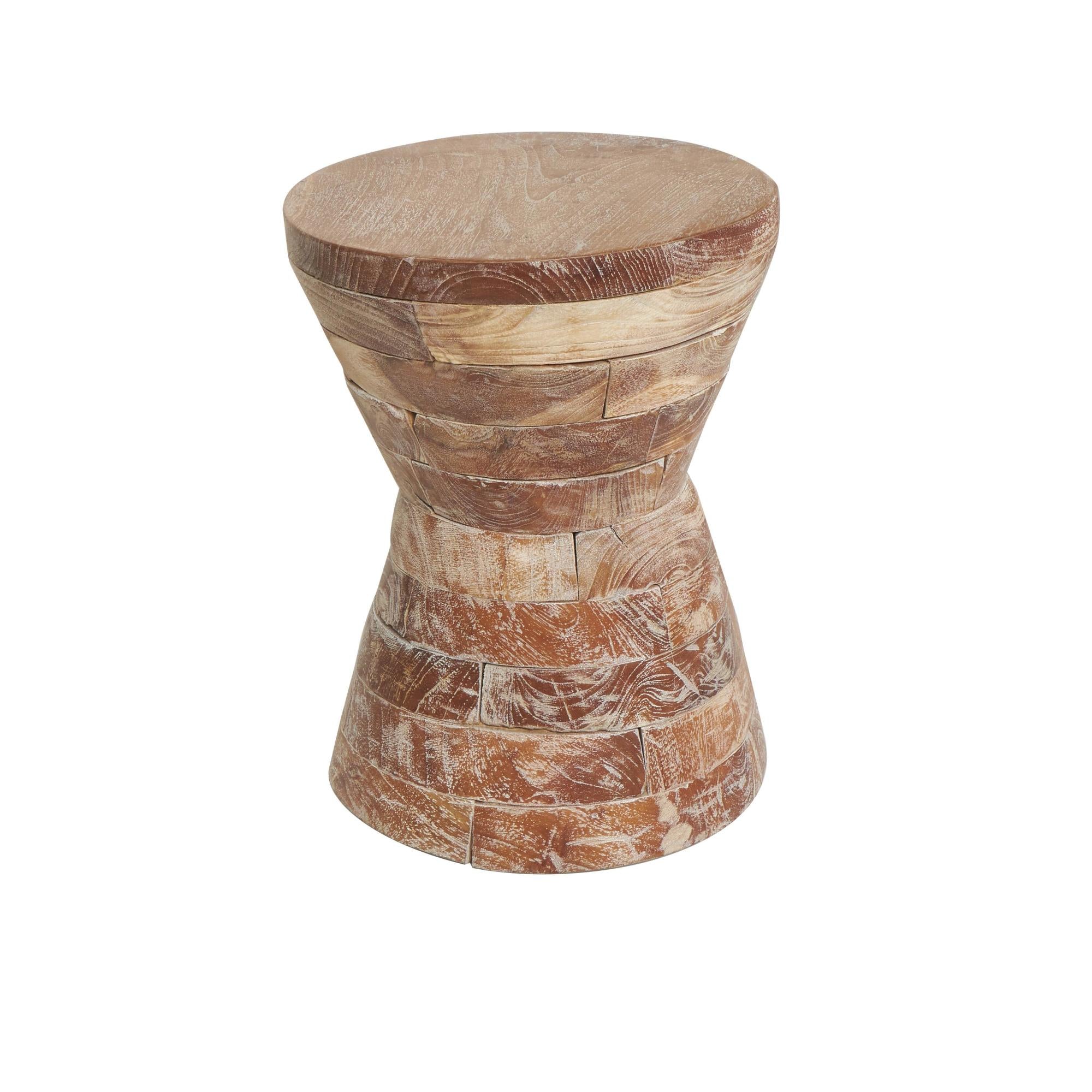 Geometric Teak Wood Handmade Hourglass Side End Accent Table with Stacked Wood Pieces