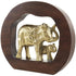 Elephant Gold Aluminum Metal Decorative Sculpture with Brown Wooden Frame