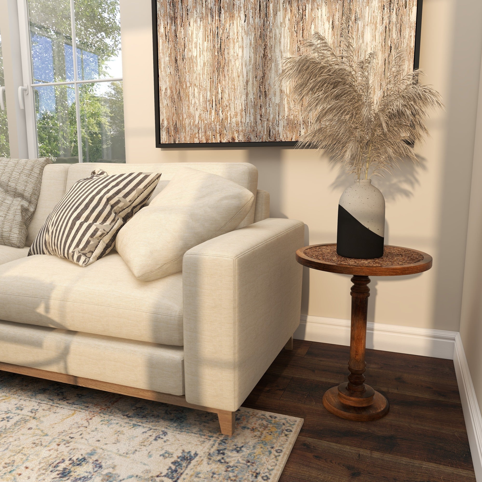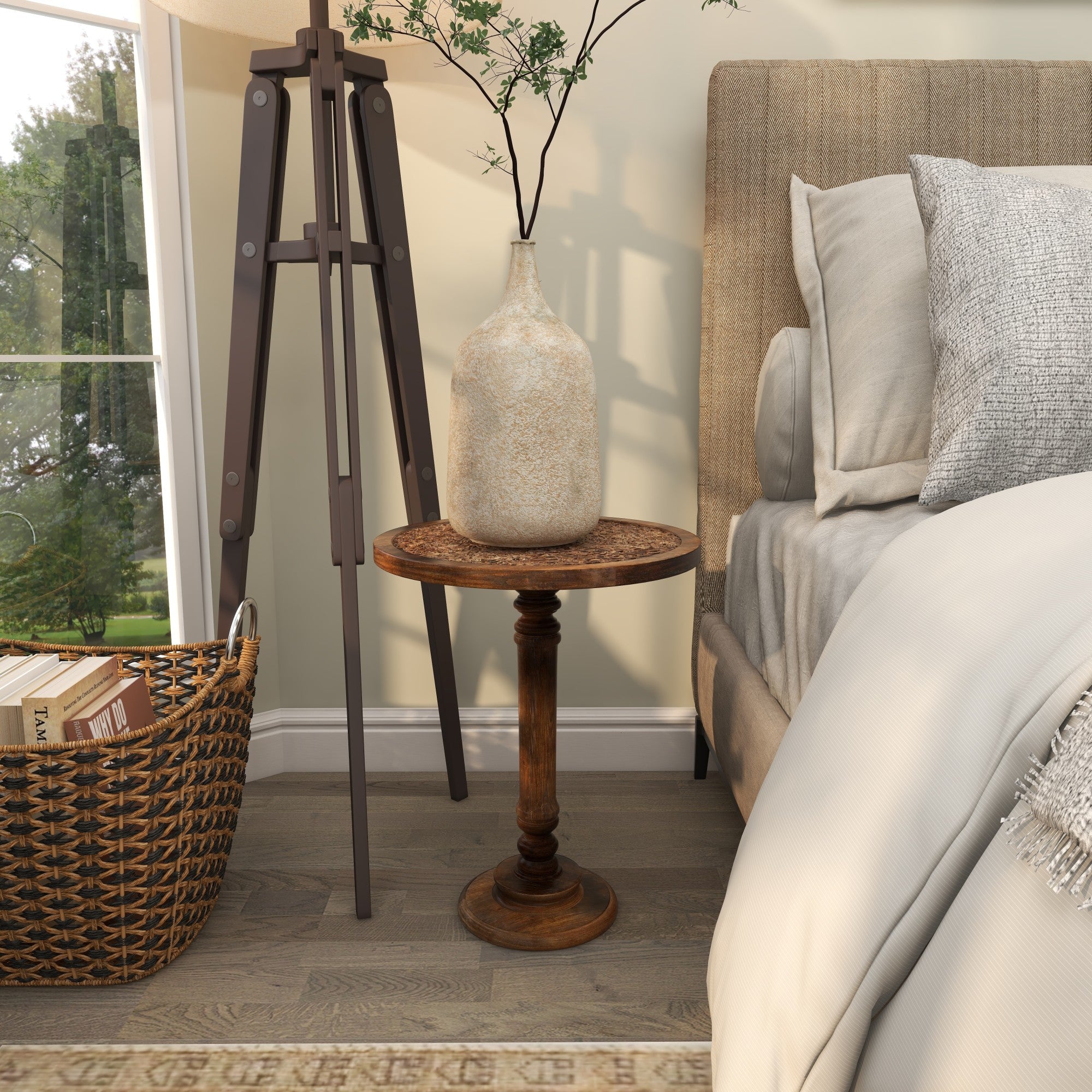 •This side end accent table is meticulously crafted from solid mango wood, known for its durability and unique wood grain patterns