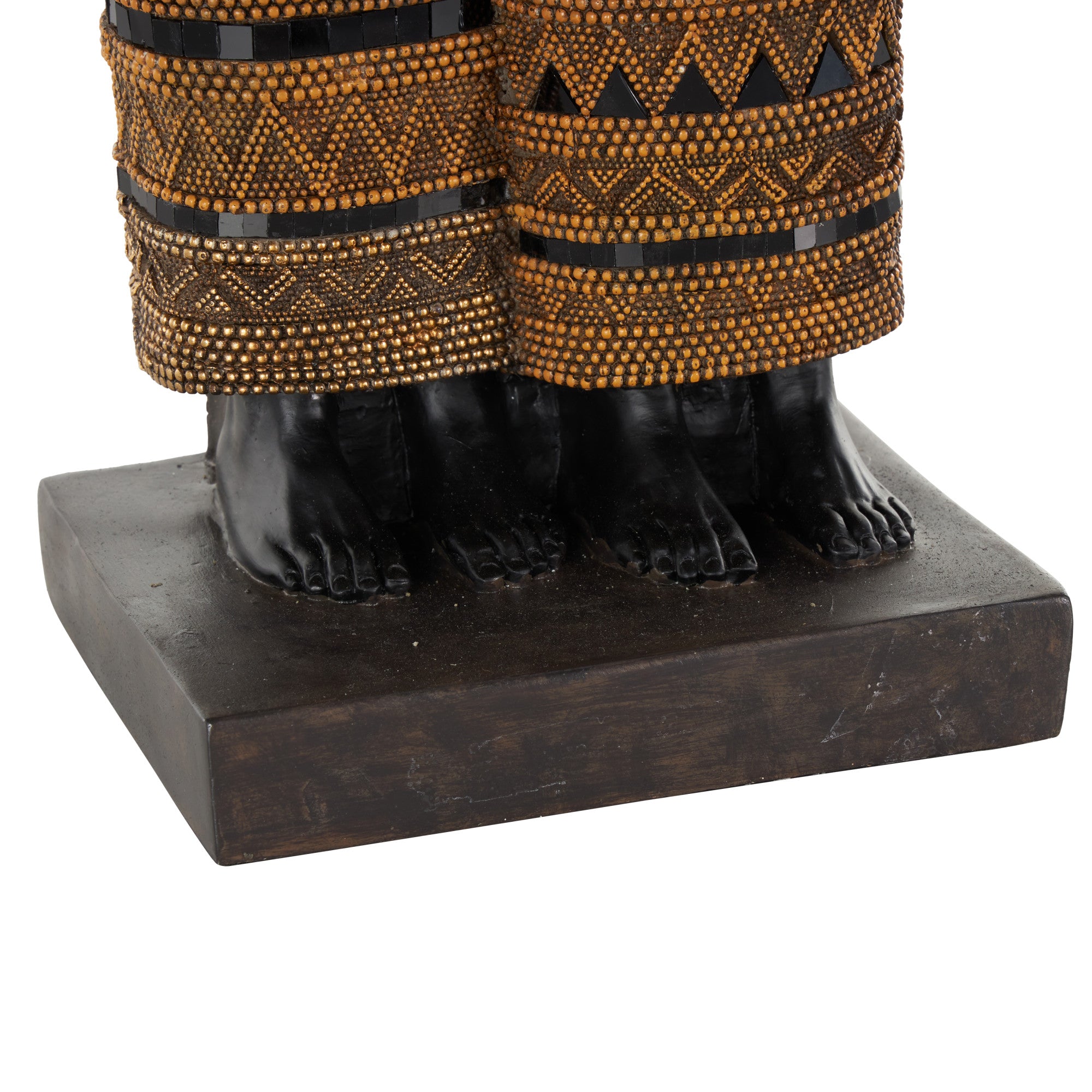 •Matte home decor figurine has a tall, slender shape with tribal patterns and a rectangular base that adds sophistication to any space