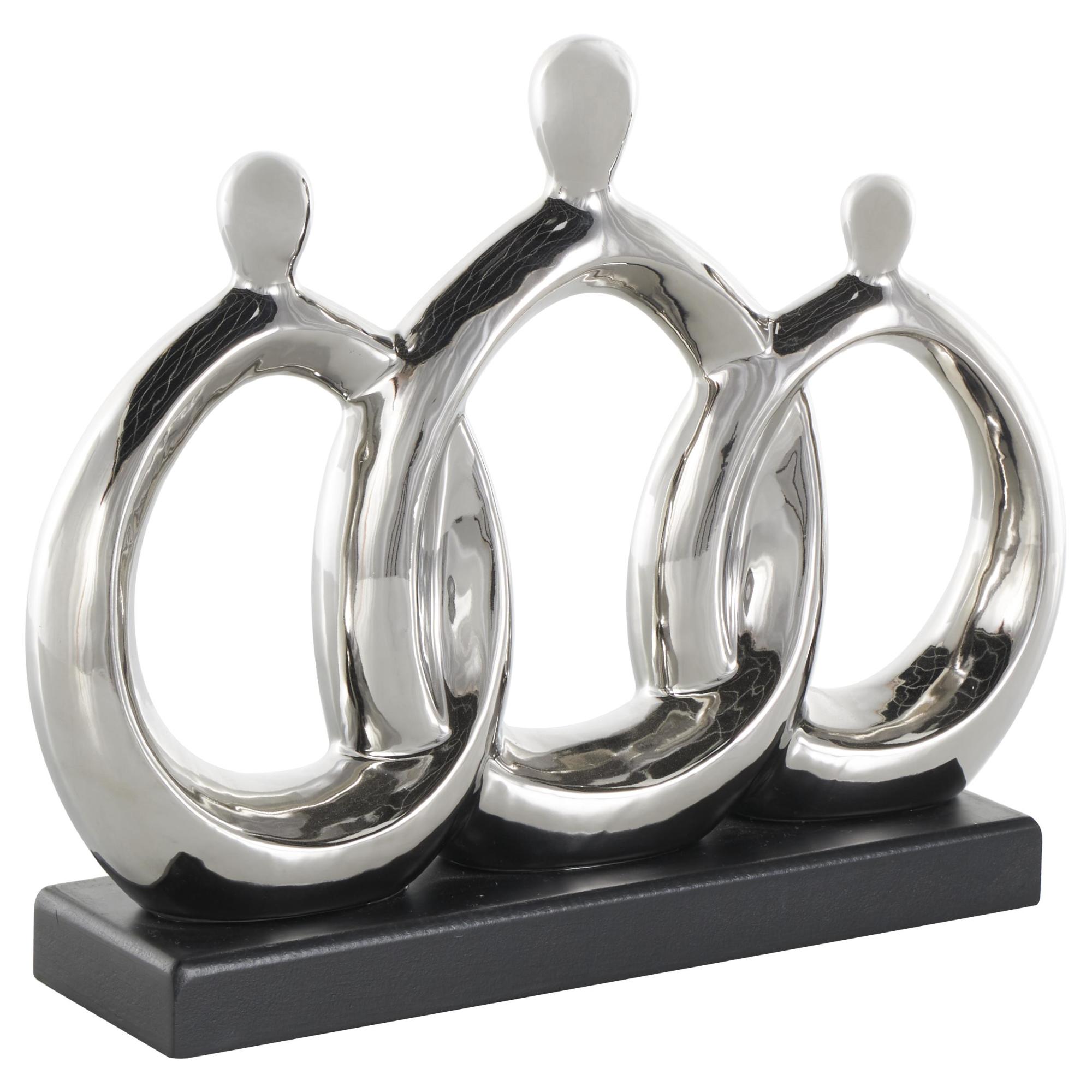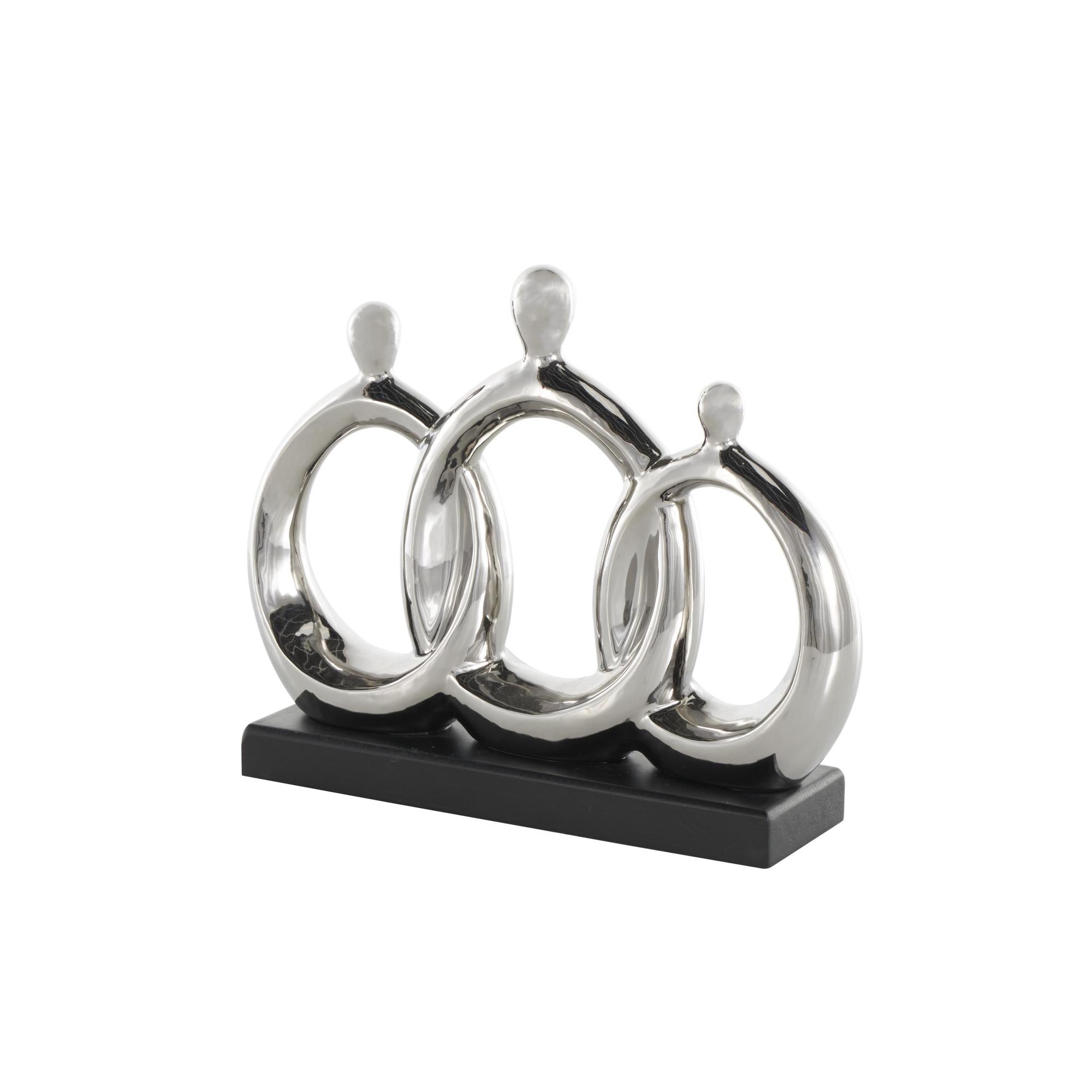 Family Silver Ceramic 3 Figure Decorative Sculpture with Black Rectangular Base