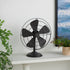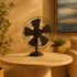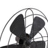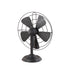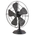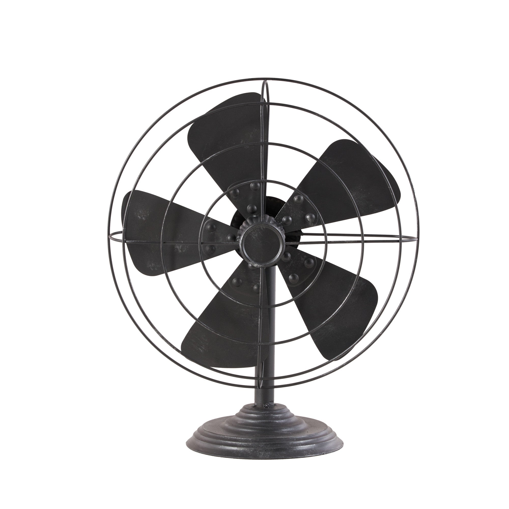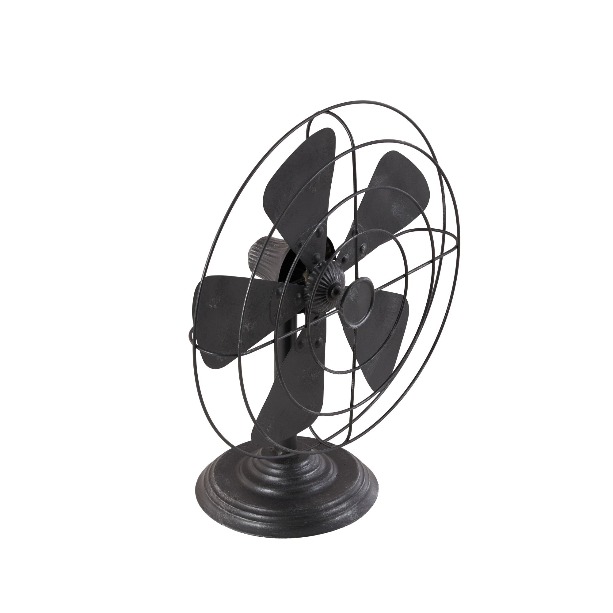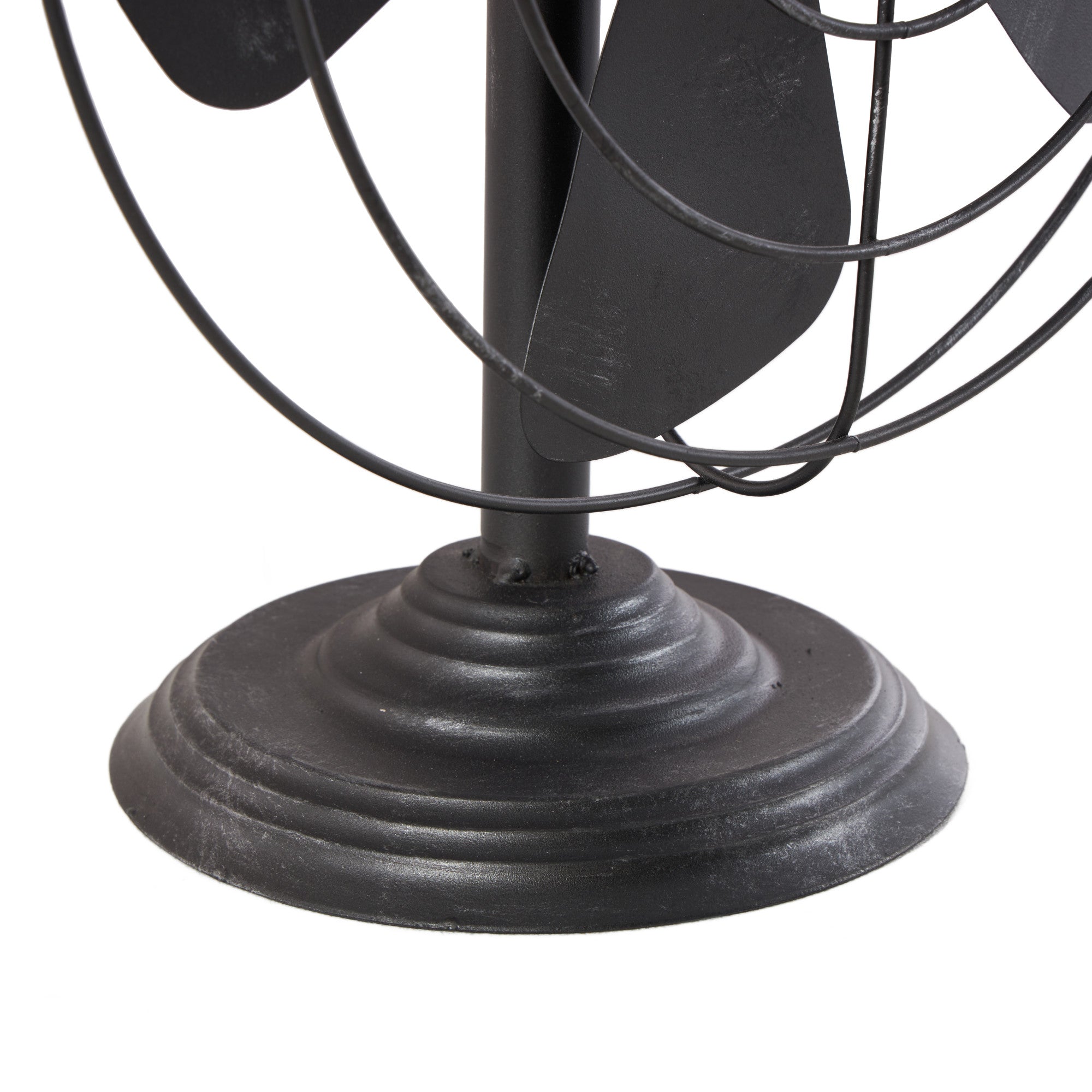 •Iron sculpture features a vintage-style electric fan with an old five-blade design, round metal grill cage, and intricate riveting work on a classic round base