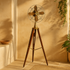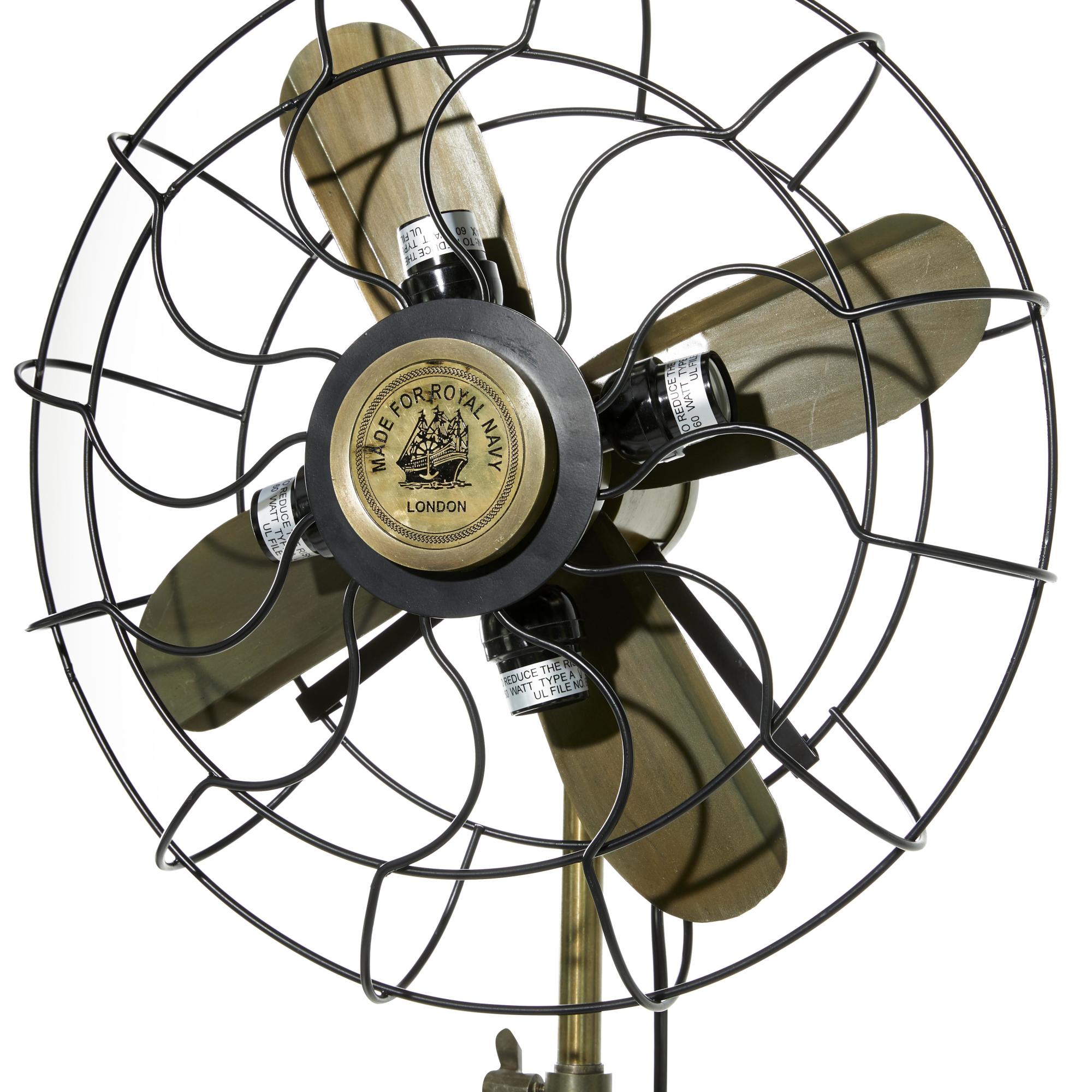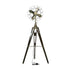 •The matte floor lamp for bedroom stands out with its vintage round fan design, featuring four visible bulbs and a ship detail at the center, connected to a tripod base
