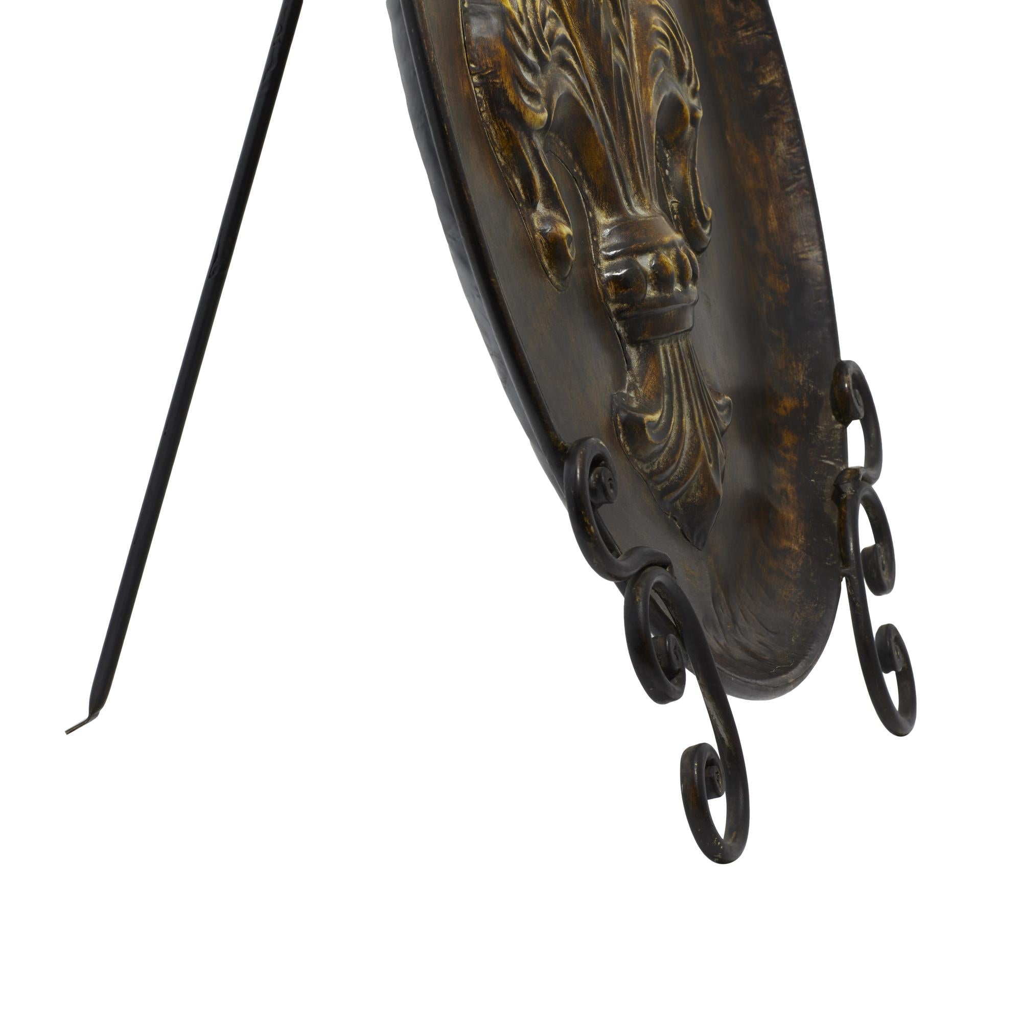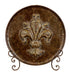 Fleur De Lis Brown Metal Embossed Detail Decorative Charger with Stand