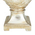•The satin vase for faux flowers boasts a classic, timeless urn shape with a rounded body, rectangular base, and floral details