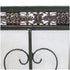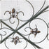•Weathered spark guard cover showcases two rectangular panels adorned with elaborate scroll iron designs and fleur-de-lis accents