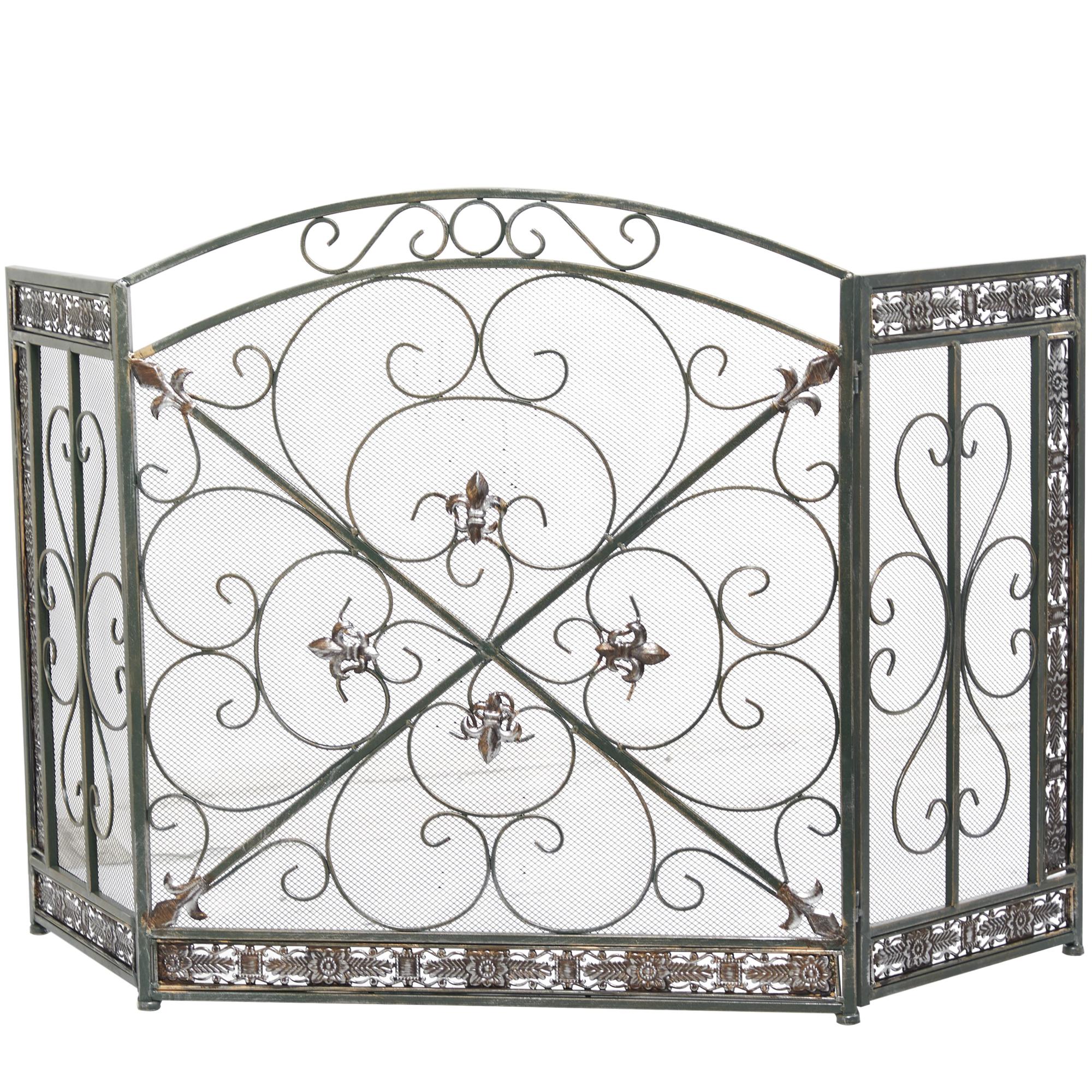 Keep those straw ambers at bay with this fire place screen. Adding style even when the fire isn't lit, this fireplace screen adds style as well as function. Enhance your home’s charm by placing this fire spark guard over your fireplace or an empty wall to fill negative space beautifully. This item ships in 1 carton. Please note that this item is for decorative use only. Features fleur de lis and floral sculptures. This fireplace screen features paint that can resist heat up to 600 degrees.. Suitable for indoor use only. This item ships fully assembled in one piece. Item features 3 panel screens. This is a single fire spark guard. Traditional style.