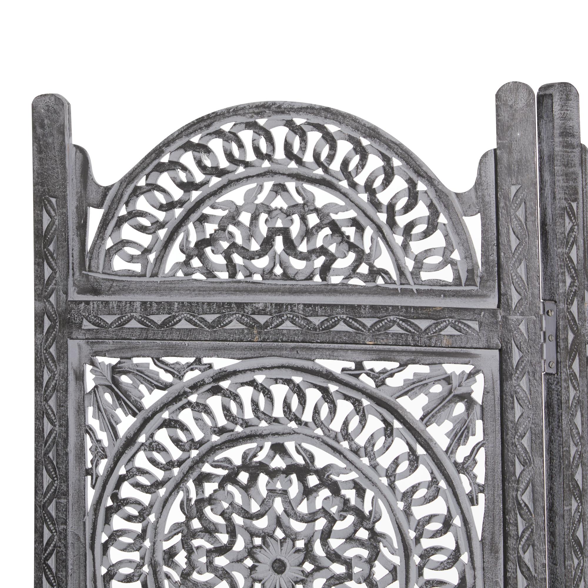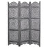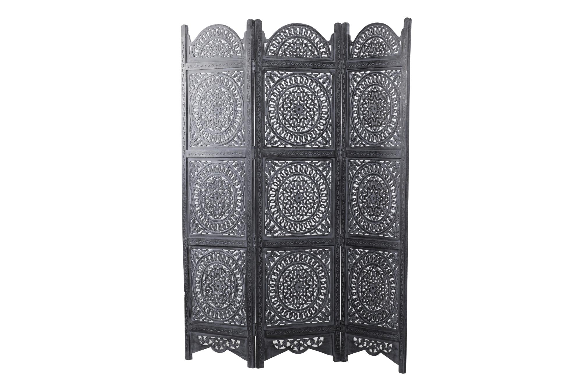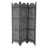 Floral Black Wood Handmade Foldable Partition 3 Panel Partition Room Divider Screen with Carved Designs