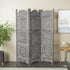 •Each section of this wood room divider screen features an intricately carved center medallion and an arched structure, enhancing its refined style