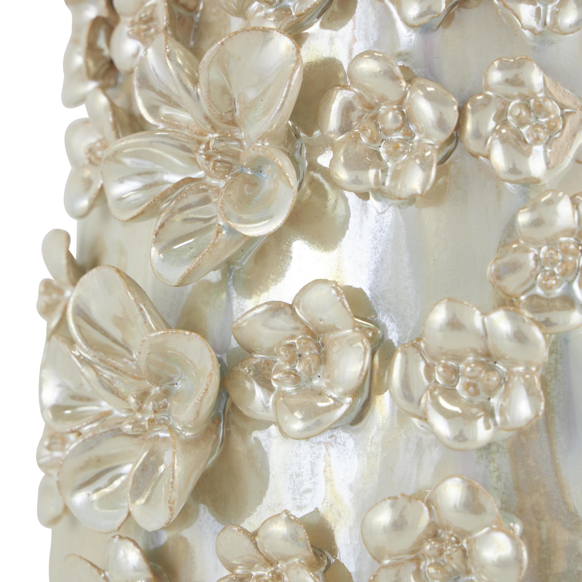 Floral Cream Ceramic 3D Decorative Vase with Iridescent Glaze