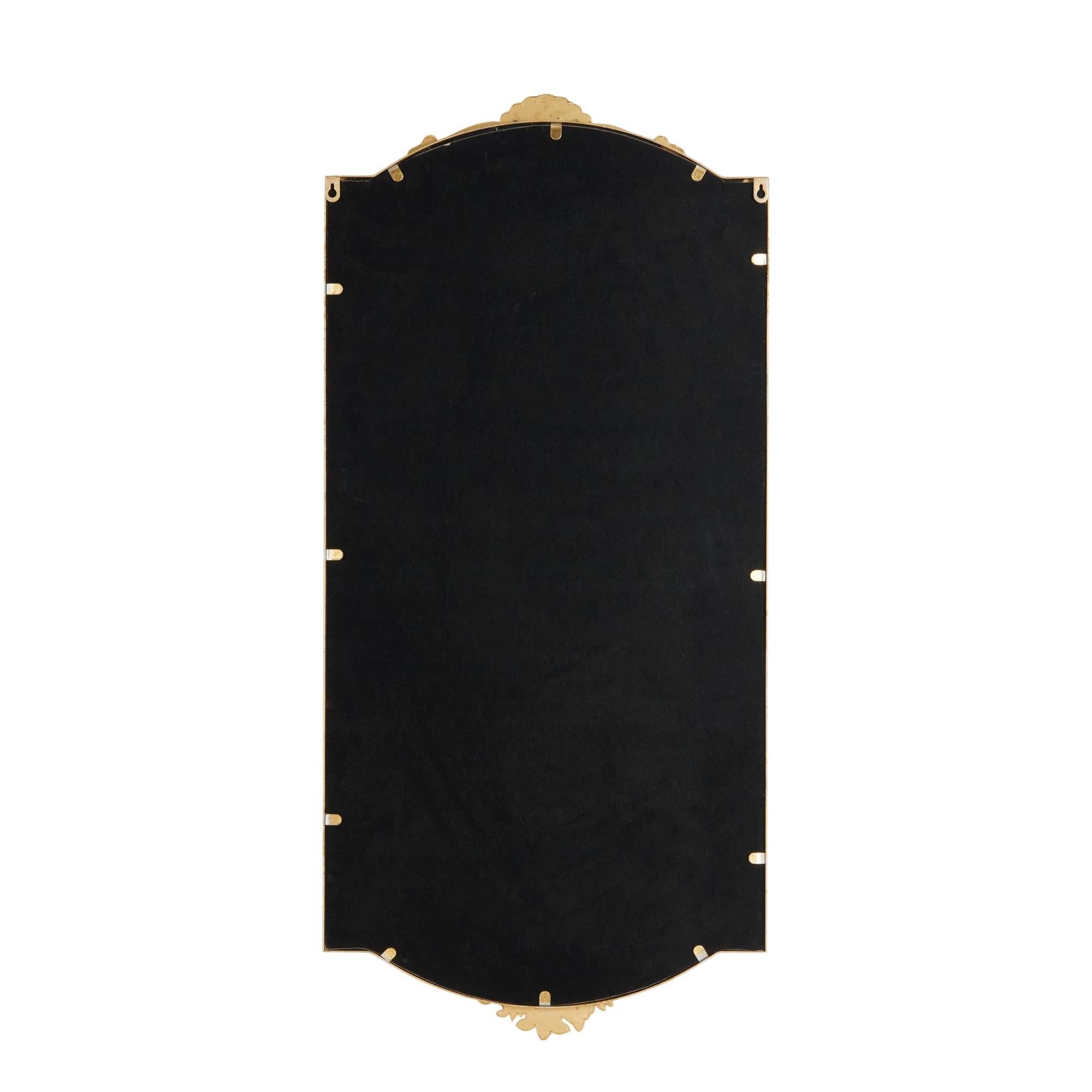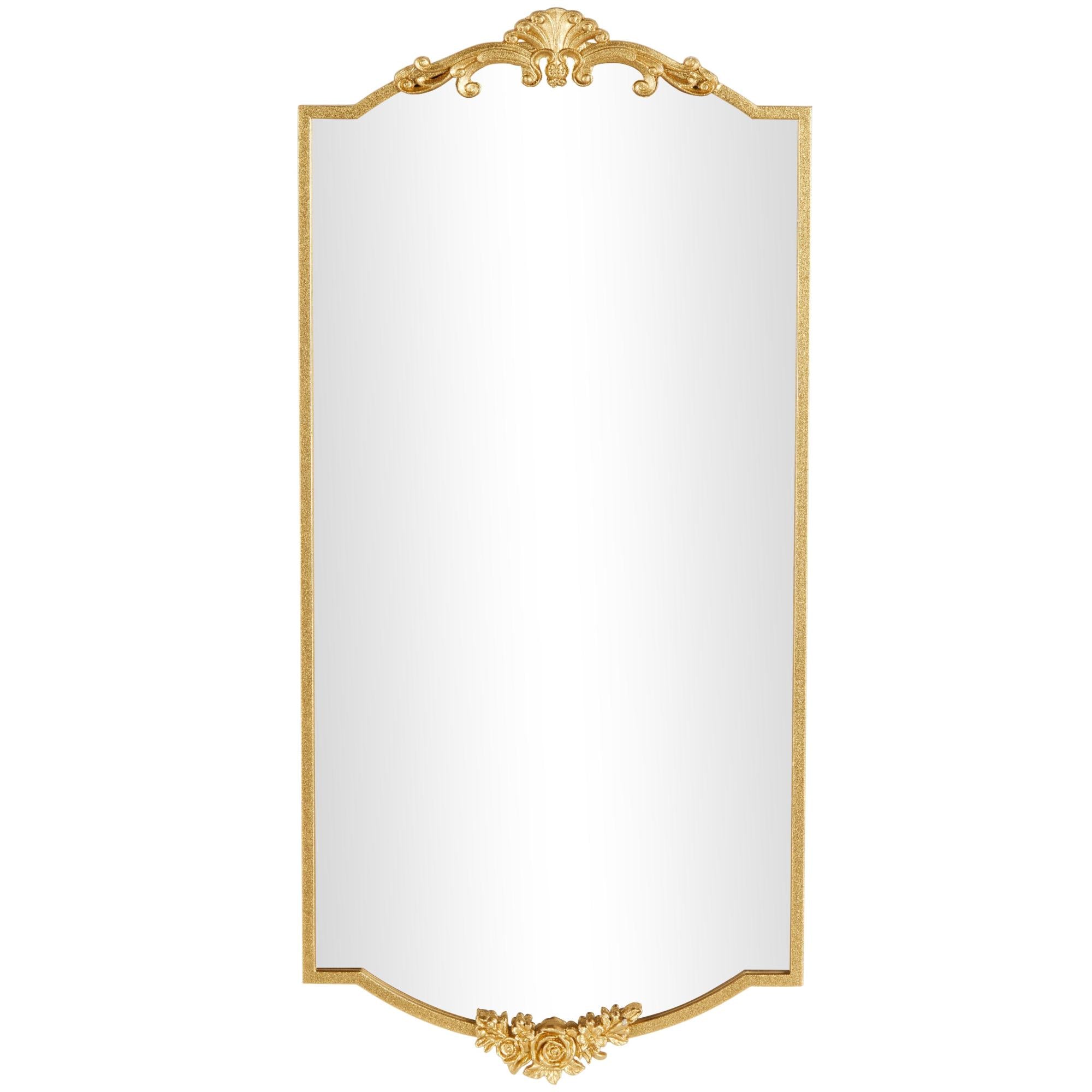 •The satin mirror for wall has a rectangle shape and floral embellishments add a softness to its design, contrasting beautifully with the ornate floral details