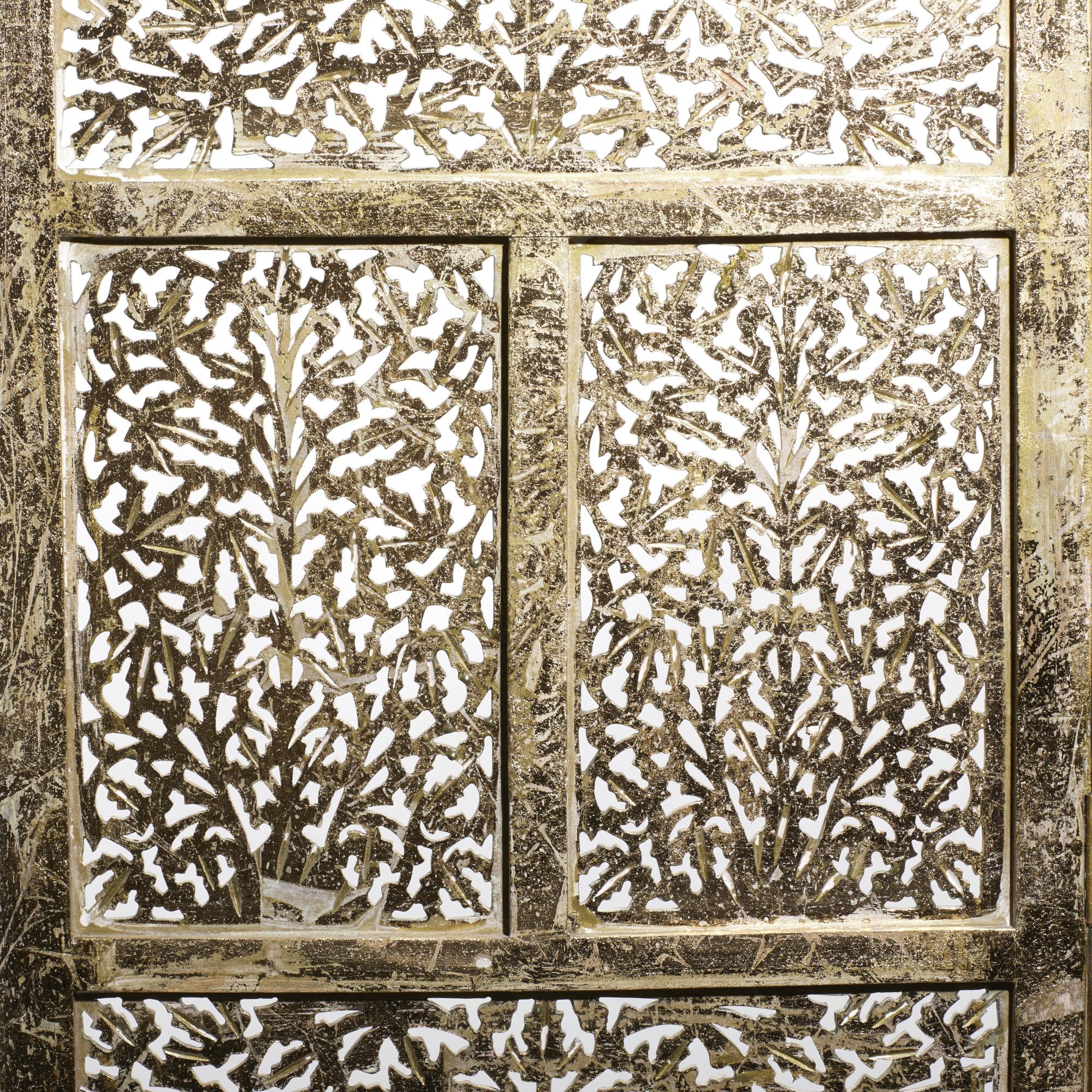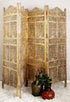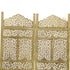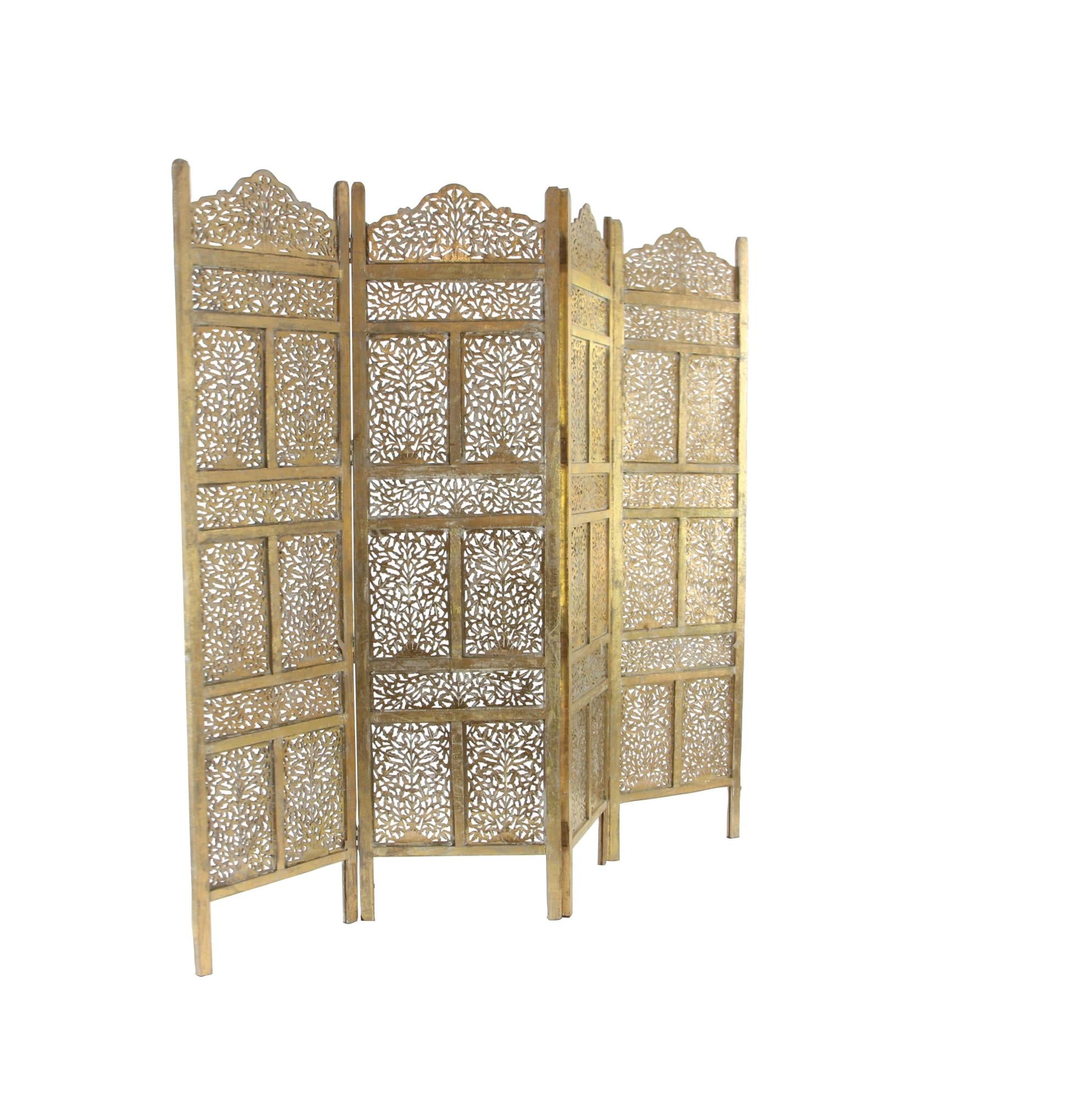 Floral Gold Wooden Handmade Foldable Partition 4 Panel Partition Room Divider Screen with Carved Designs