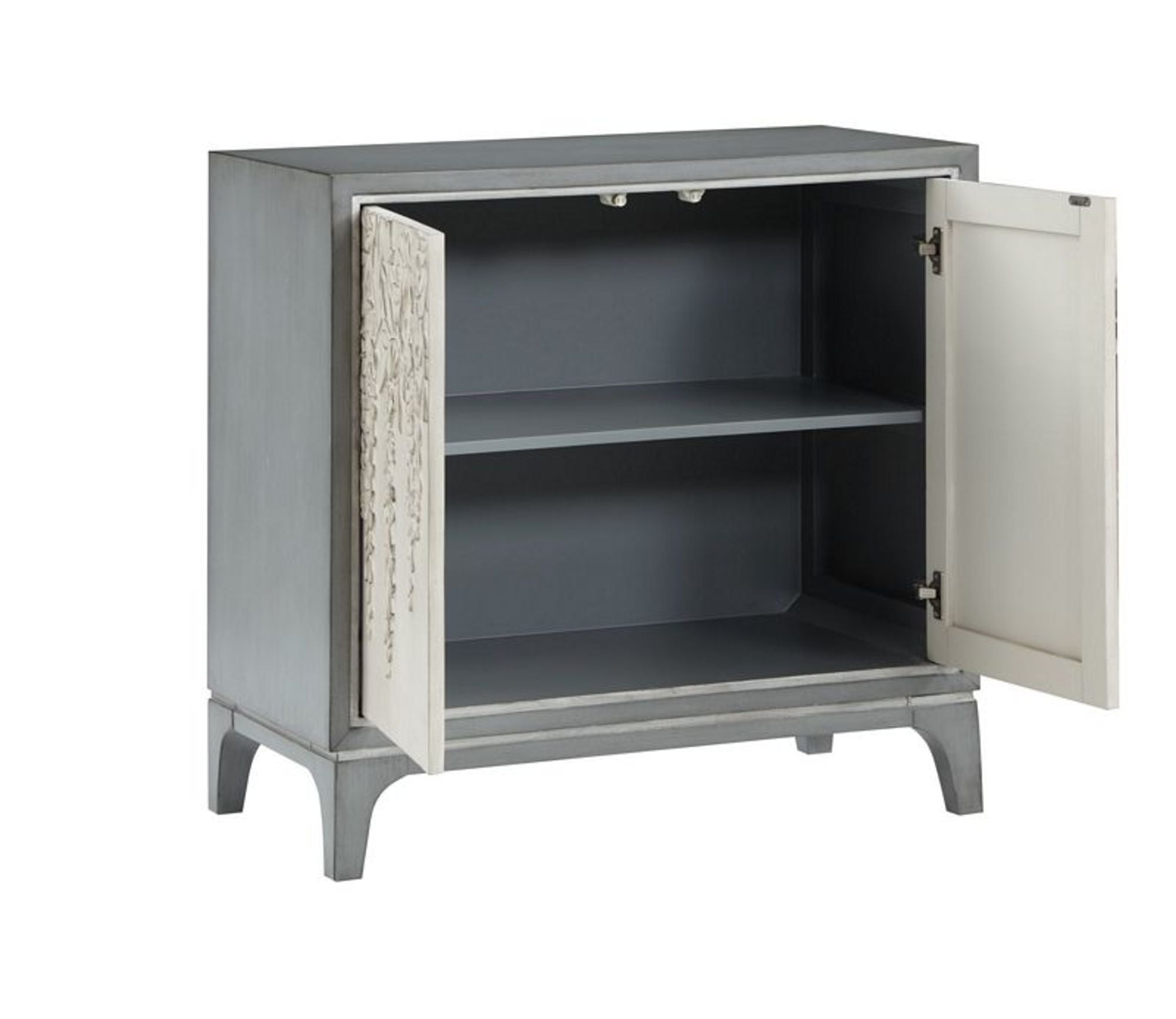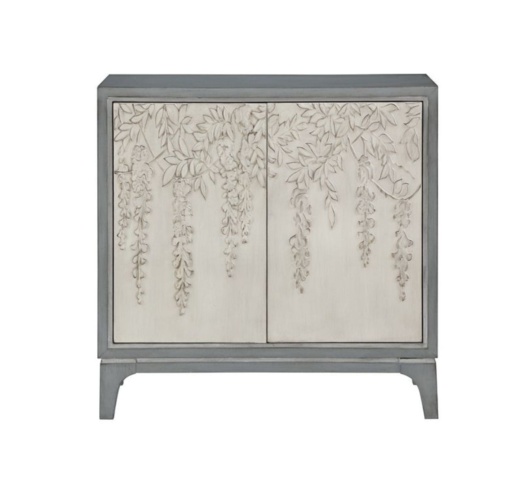 Floral Gray Wooden Relief 2 Door Room Cabinet with Cream Front Doors and Cascading Leaf Design