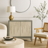 •With its square shape and leaf patterns, this brushed storage cabinet for room offers ample storage and style