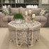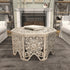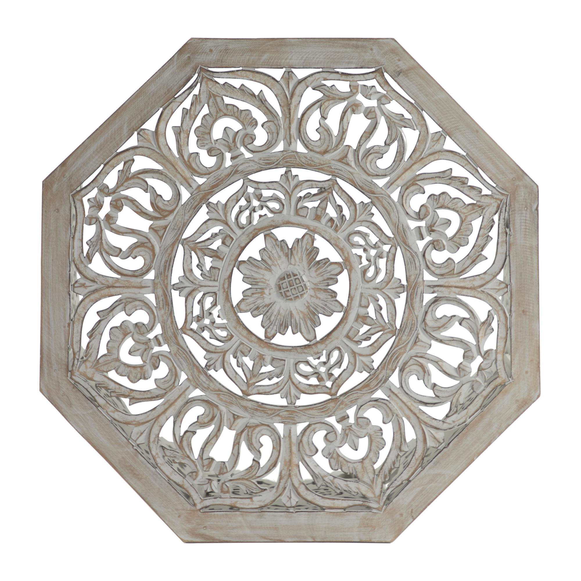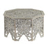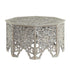•Distressed center table for living room boasts an octagonal design featuring elaborate hand-carved patterns of flowers and leaves from surface to top