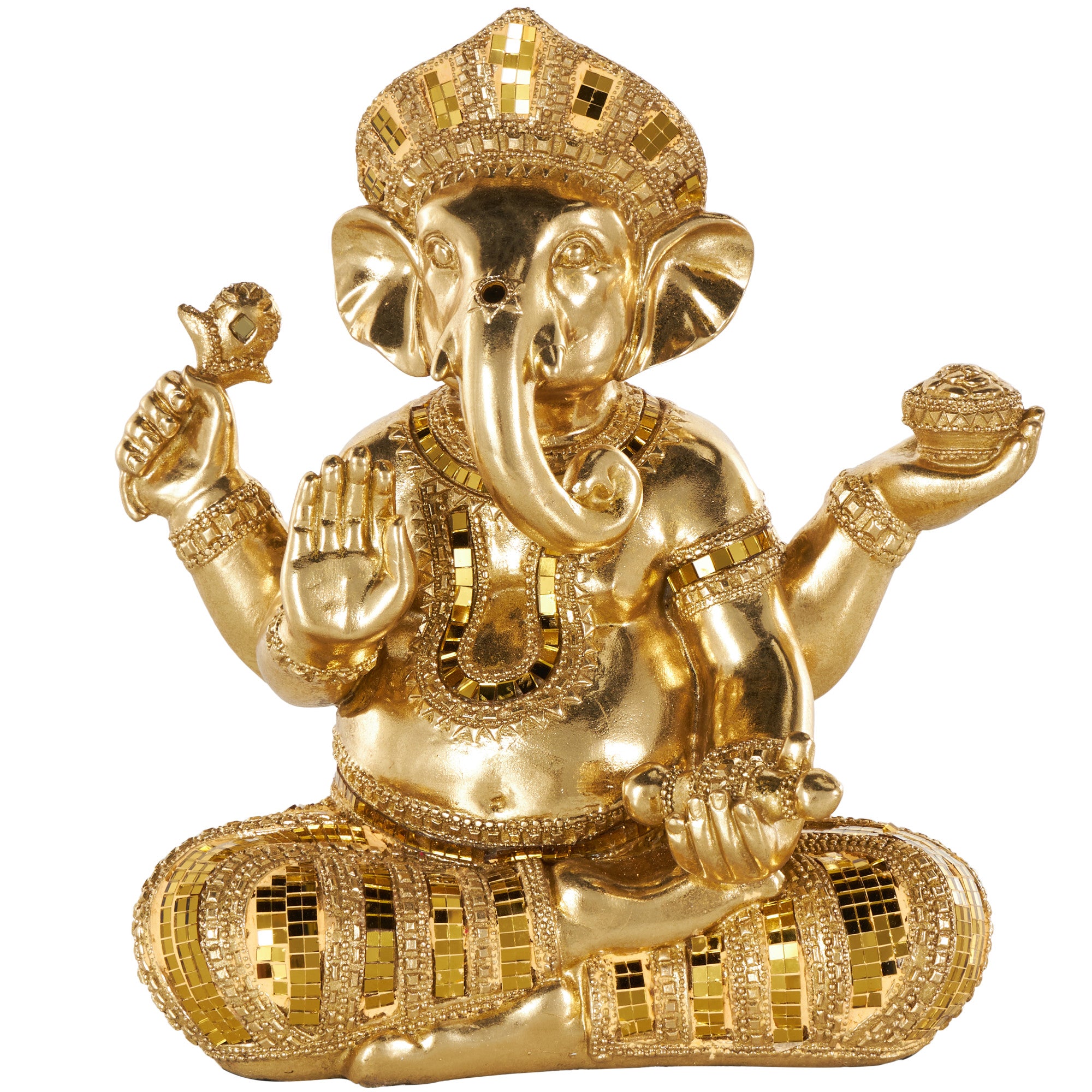 Ganesh Gold Resin Decorative Sculpture with Mosaic Details