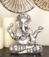 Ganesh Silver Polystone Meditating Decorative Sculpture with Engraved Carvings and Relief Detailing