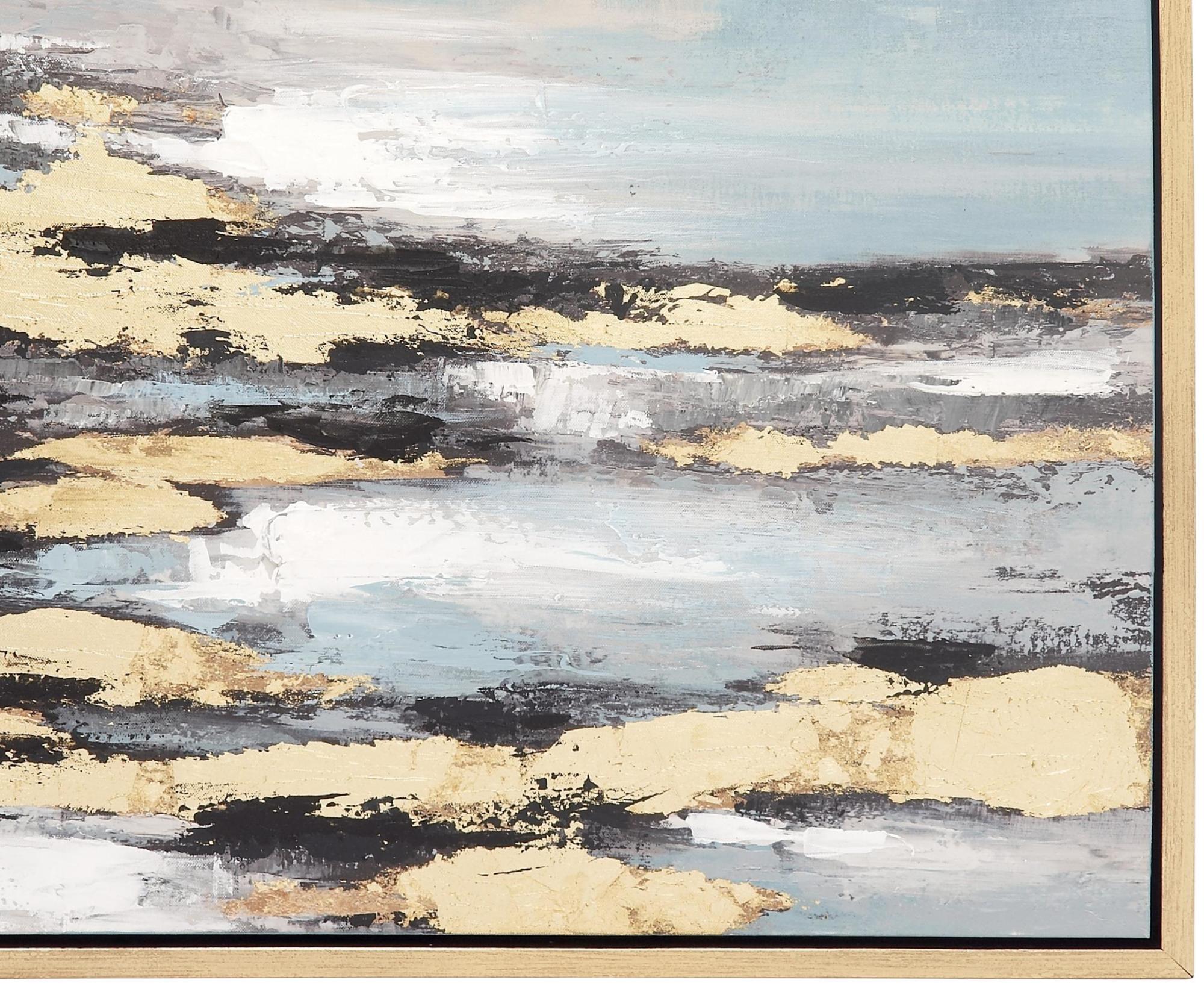 Geode Blue Canvas Landscape Living Room Framed Wall Art with Gold Frame