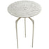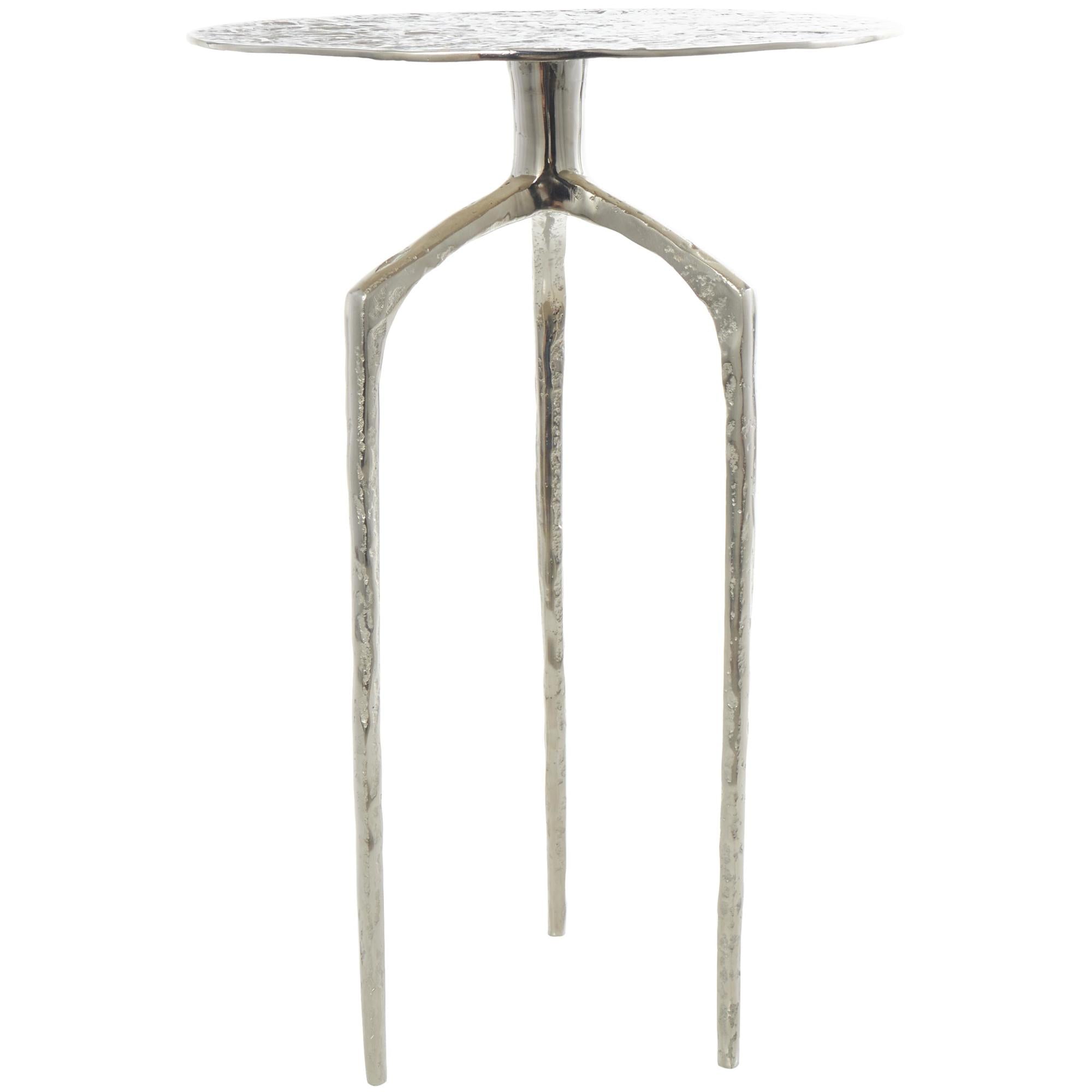 •The tripod leg design of the aluminum accent table provides a futuristic look, with a round surface for holding drinks, books or displaying decorative items