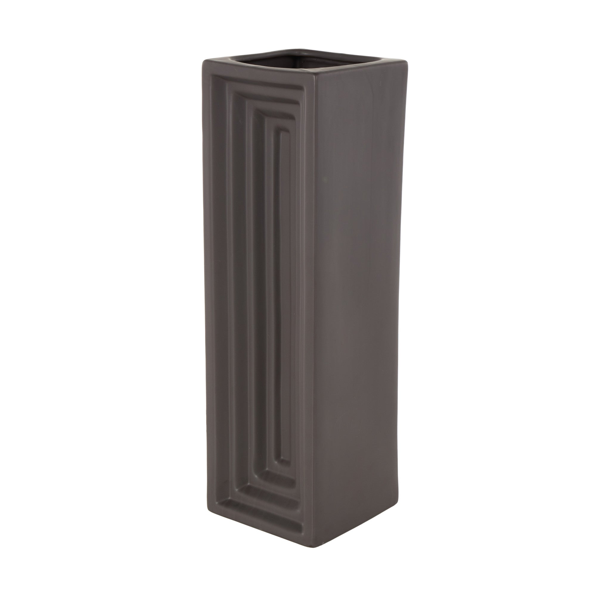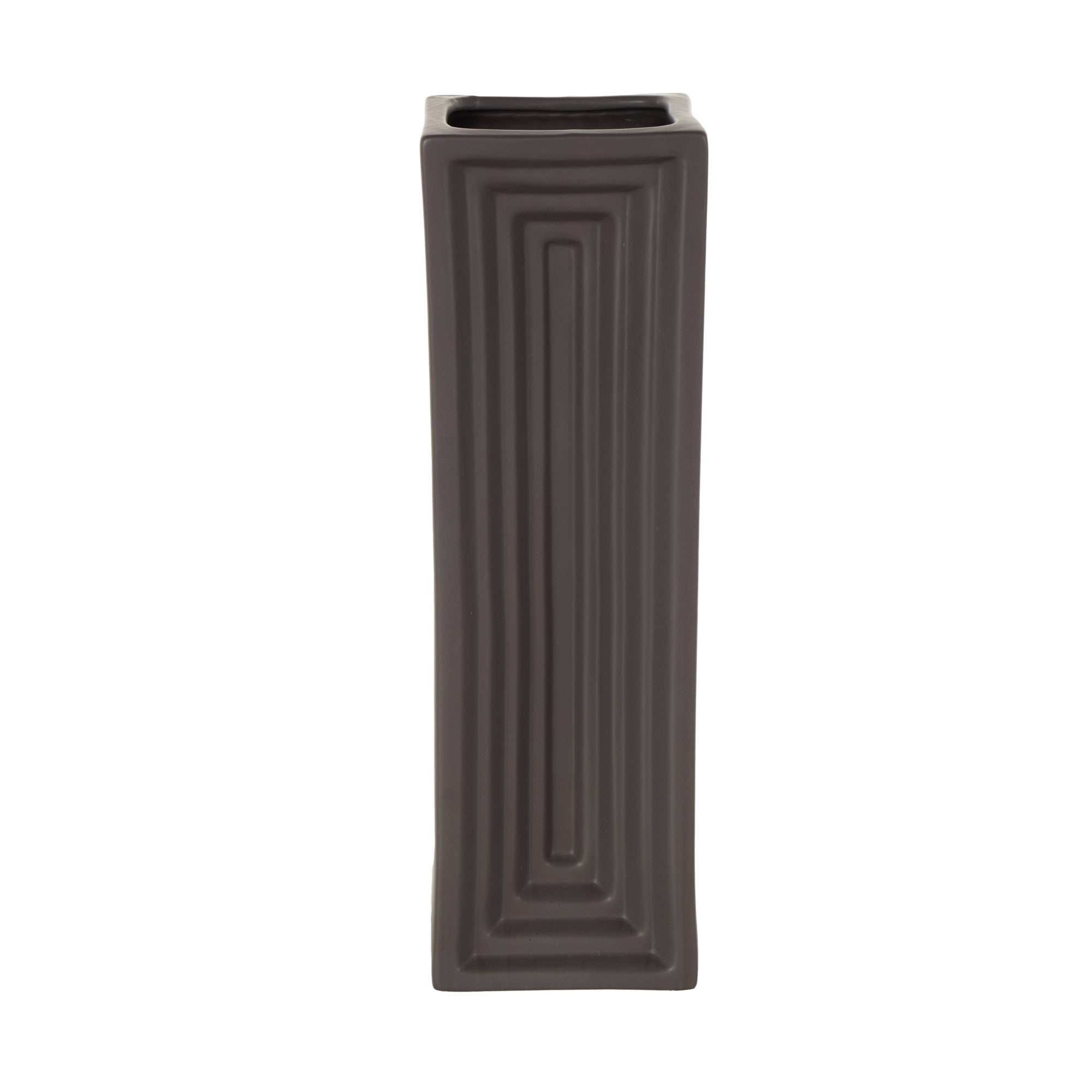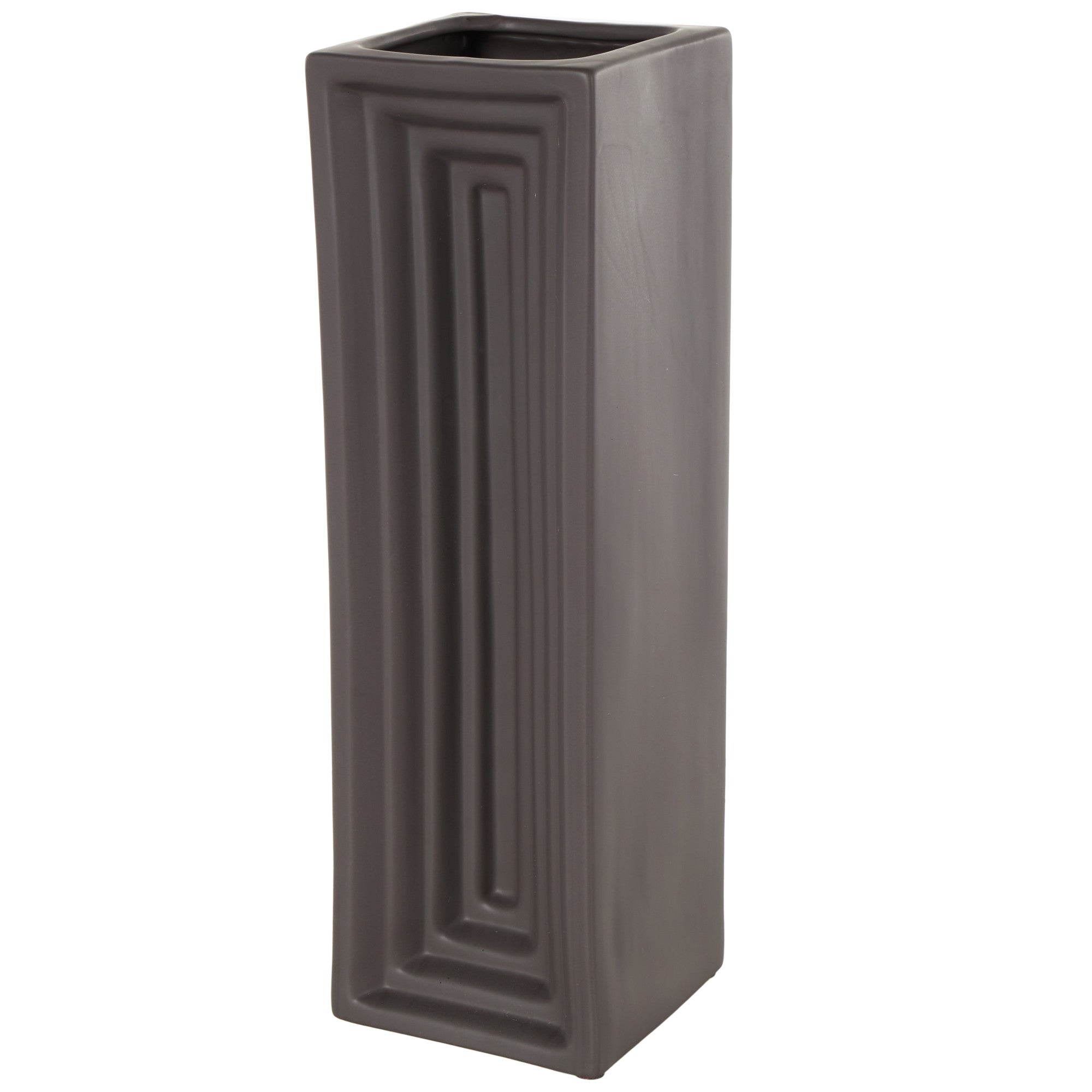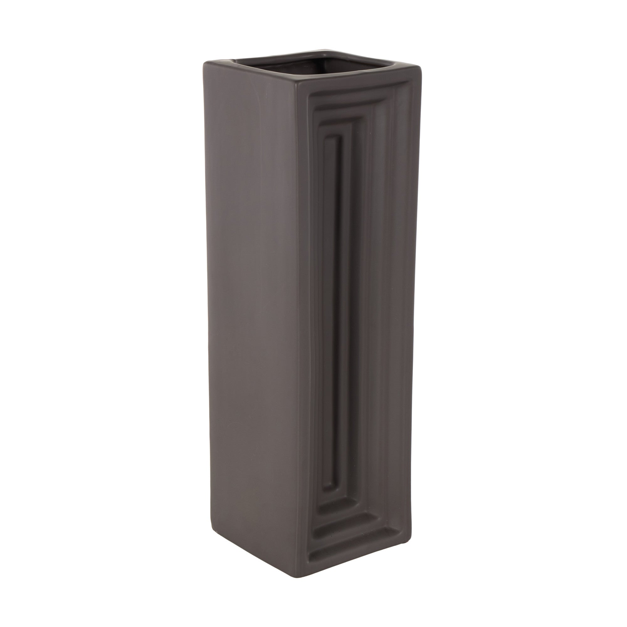 •This ceramic vase features a unique concaved design with layers and a slim, rectangular shape