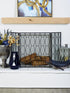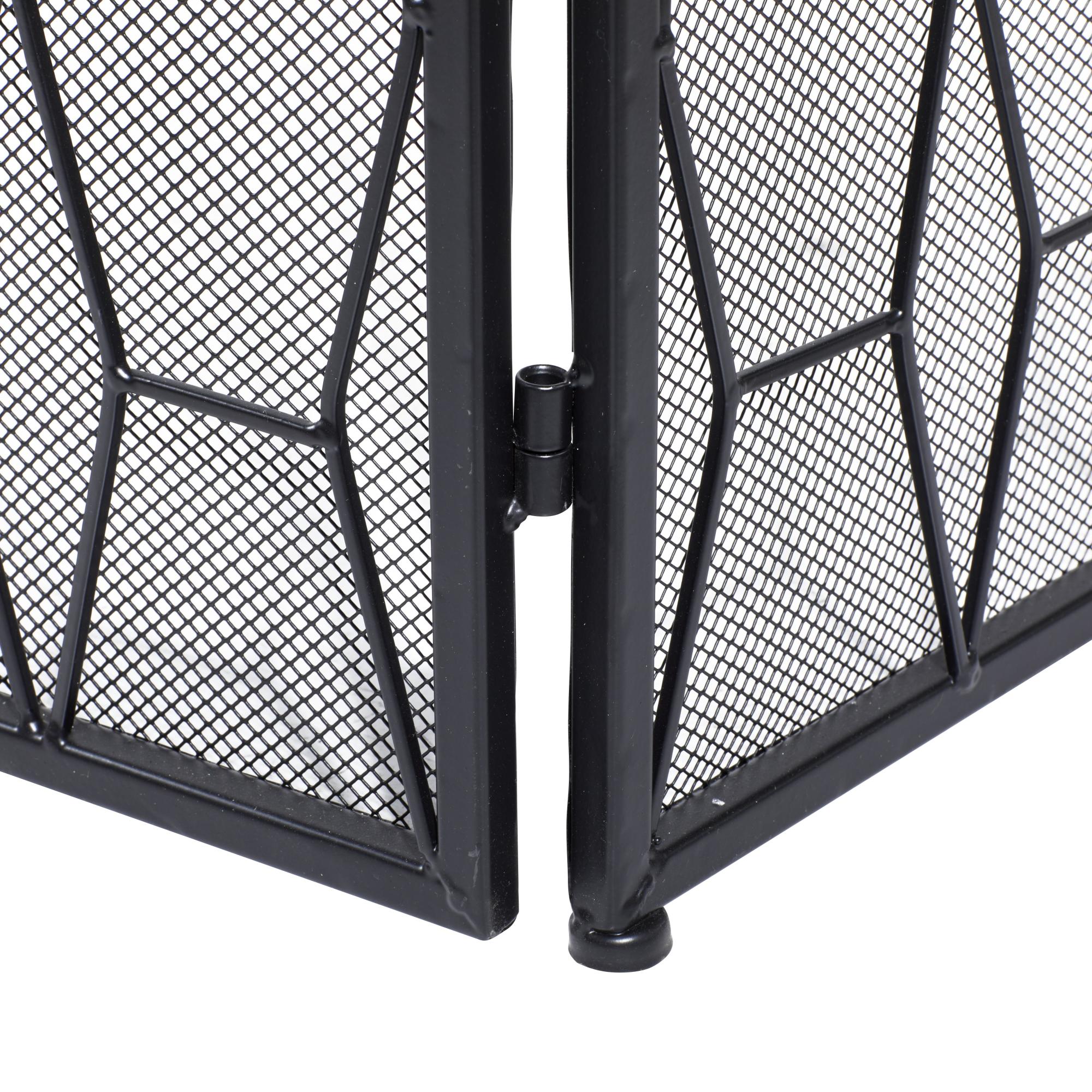 •Contemporary fireplace screen protector's hinged metal frame is expertly welded together to form a sturdy three-panel design