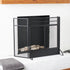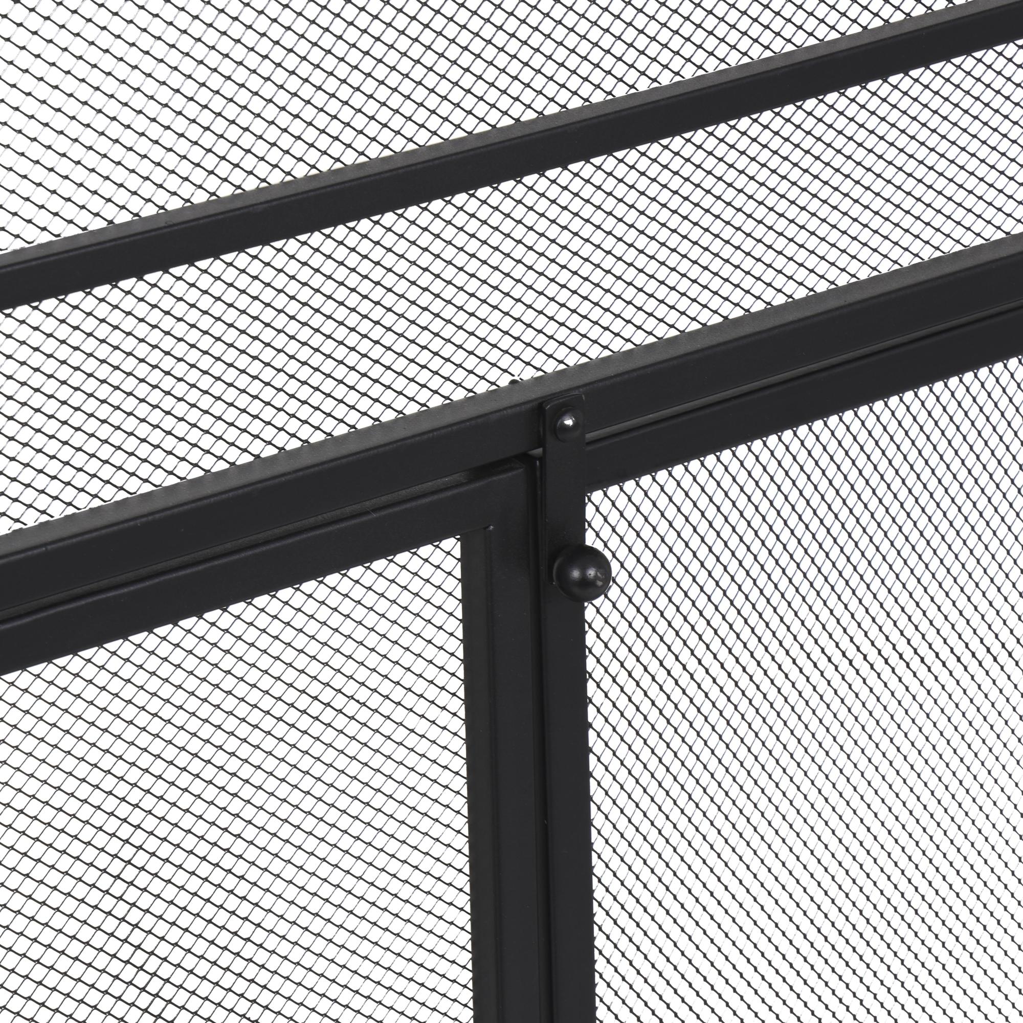 Geometric Black Metal 3 Panel and 2 Door Living Room Fireplace Screen with Mesh Backing