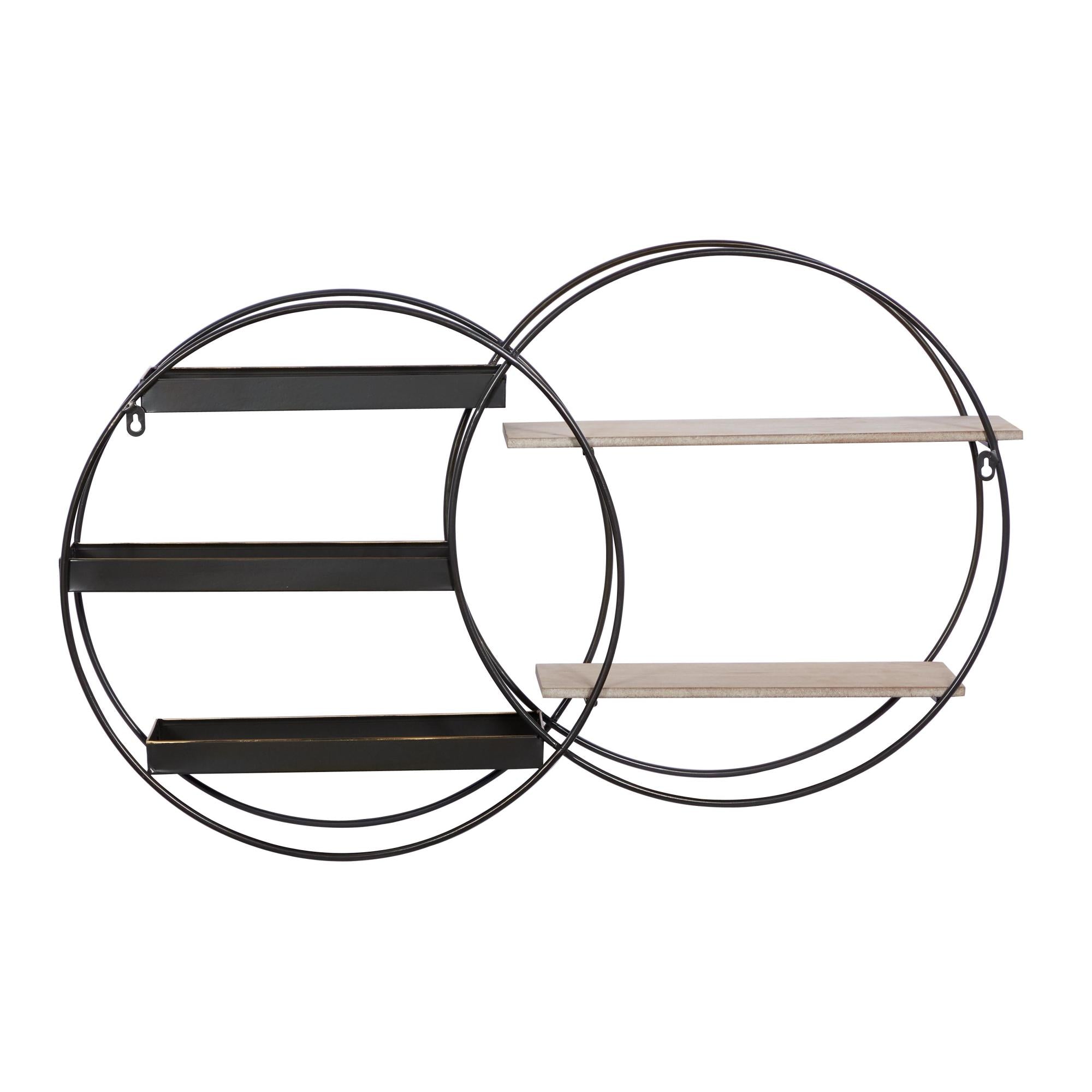 Geometric Black Metal Overlapping Circle 5 Level Room Wall Shelf with Wood Accents