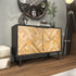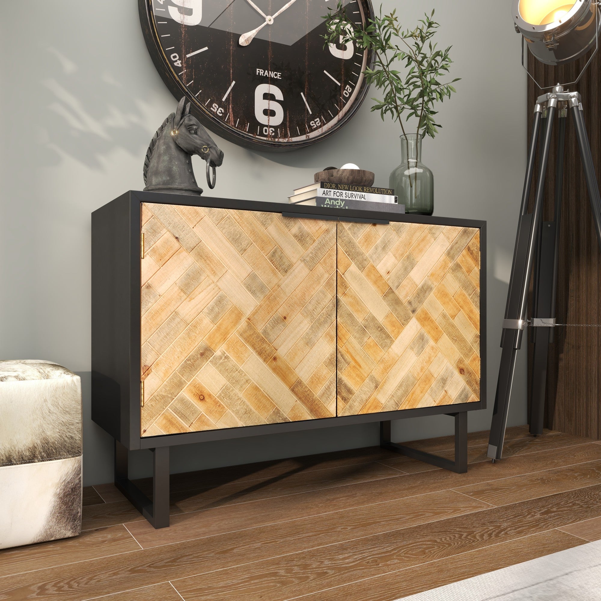 Geometric Black Wood 2 Door Room Cabinet with Wood Inlay