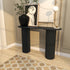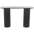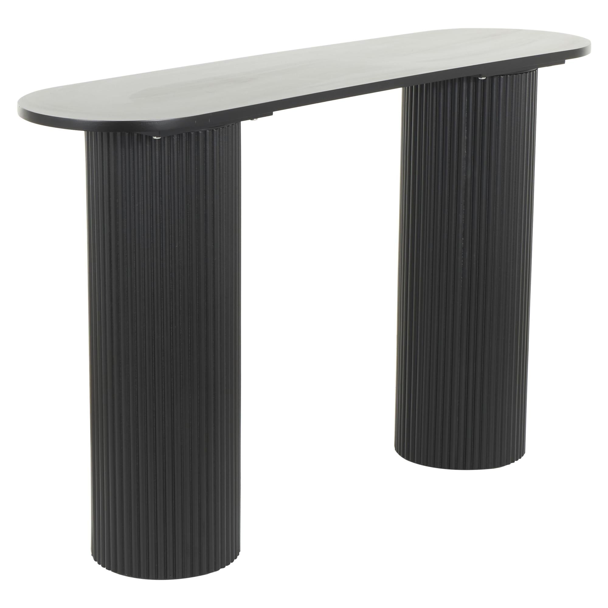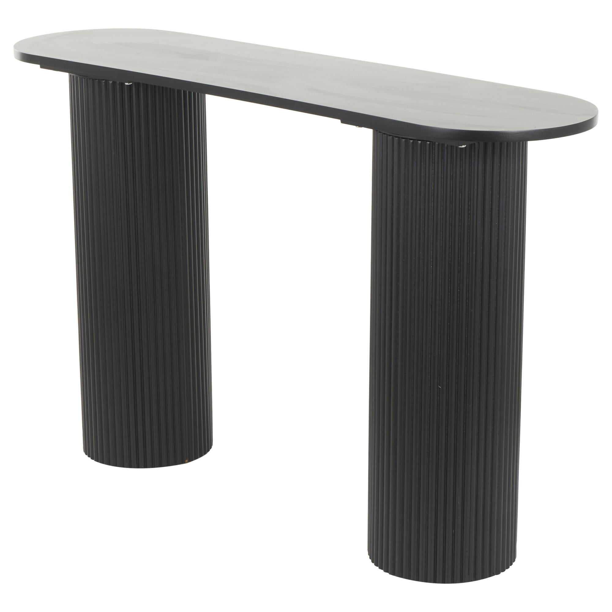 Geometric Black Wooden Oval Living Room Console Table with Ribbed Pillar Legs