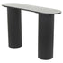 Ideal for use in entryways or living spaces, this geometric table serves as a versatile and stylish surface for displaying decor or organizing everyday items. This console table has a completely finished back. This item ships in 2 cartons. Suitable for indoor use only. This item ships fully assembled in one piece. Maximum weight limit is 200 lbs. This is a single entryway table. Contemporary style.
