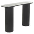 •The MDF console table features ribbed pillar legs, adding visual interest and structural strength, which enhances its contemporary appeal