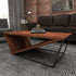 Geometric Brown Wood Diagonal Open Frame Living Room Coffee Table with Gray Metal Base
