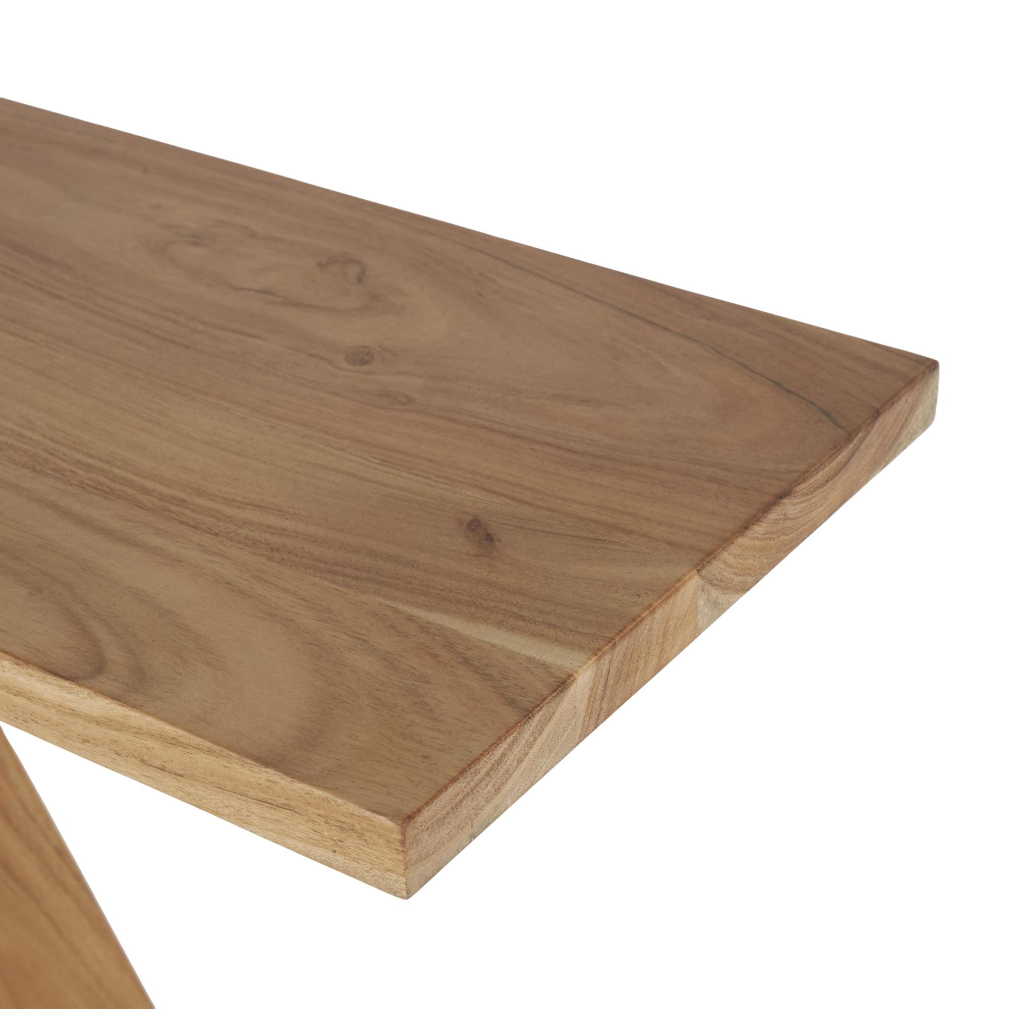 •One of the main features of this acacia console table is its geometric patterned legs, which add a unique aesthetic appeal