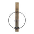 •This wood wall sconce showcases a tall mounting backboard with an enlarged ring hoop candle holder design at the center
