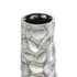 •The ceramic vase boasts geometric patterns with concaved circles, creating a visually striking piece