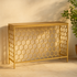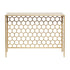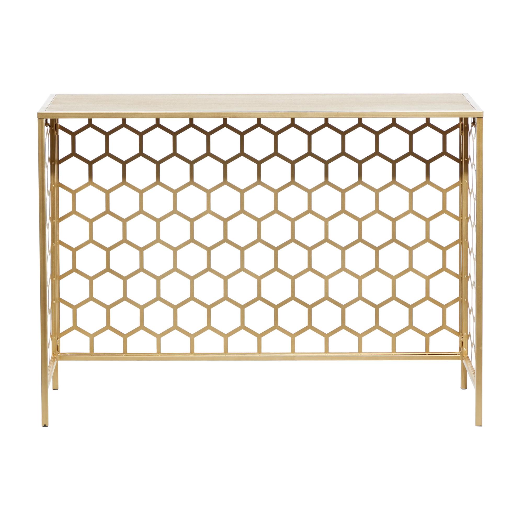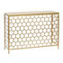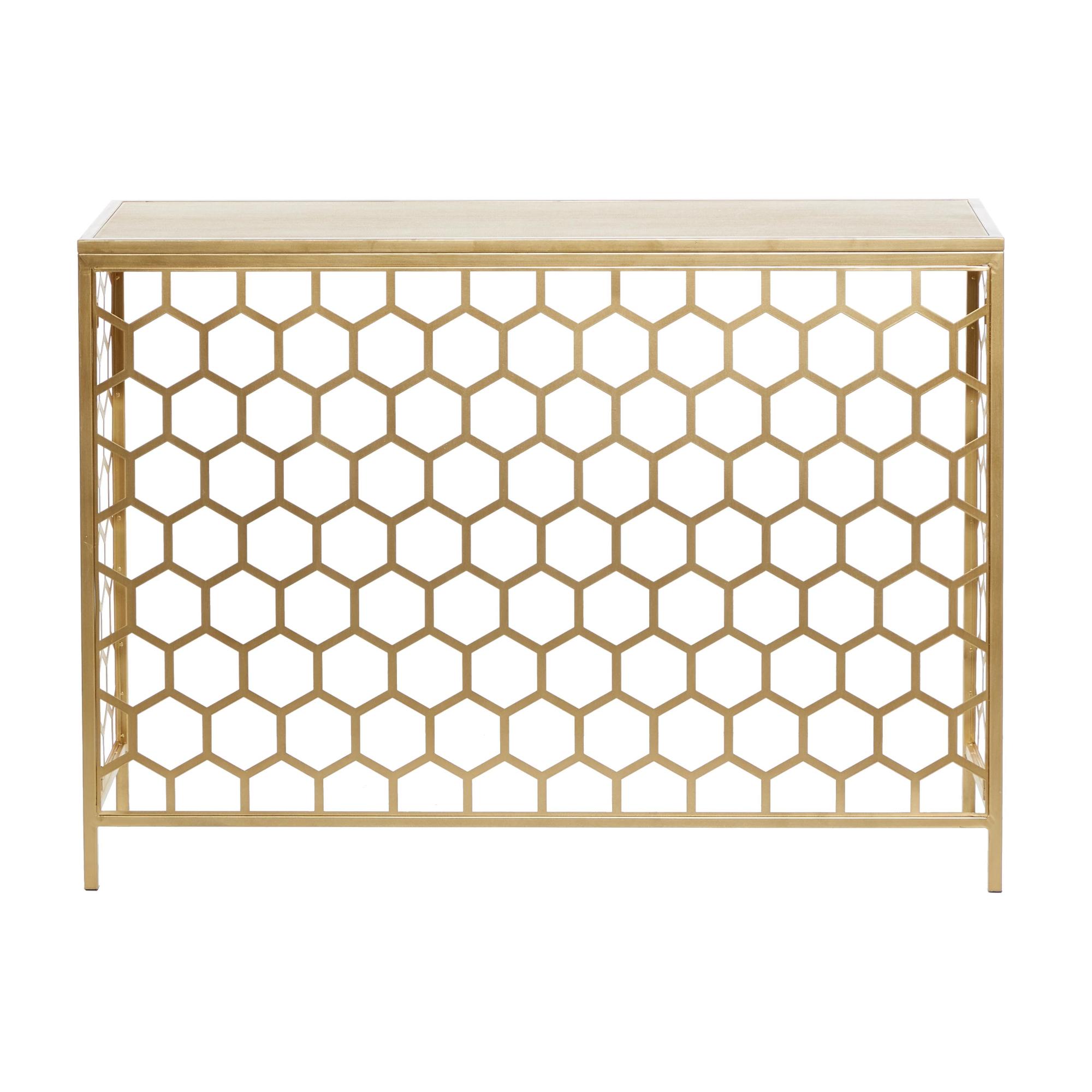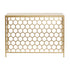 Geometric Gold Metal Honeycomb Pattern Living Room Console Table with Brown Wood Top