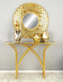 Geometric Gold Metal Rectangular Living Room Console Table with Mirrored Glass Top