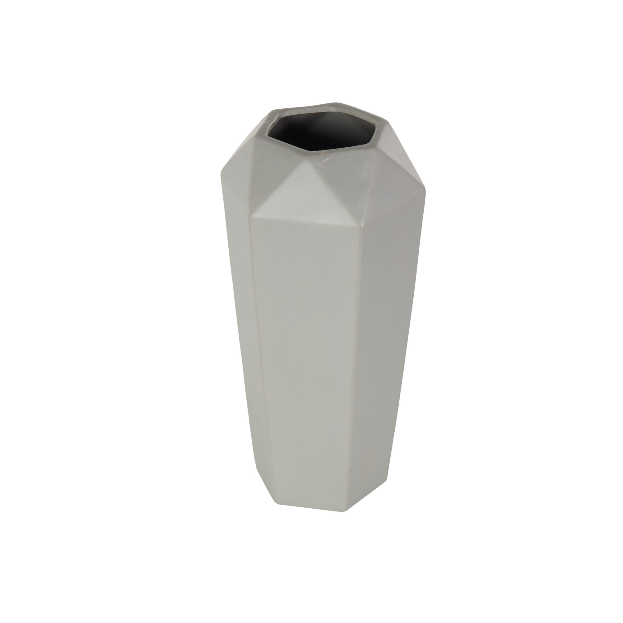 •The stoneware vase features a unique hexagonal design that adds a modern touch to any space